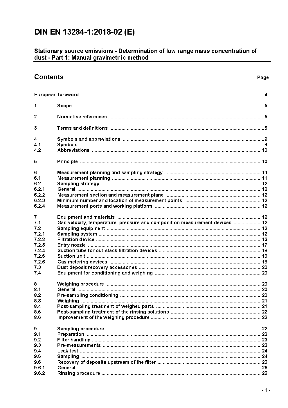 Stationary source emissions - Determination of low range mass concentration of dust - Part 1: Manual gravimetric method; German version EN 13284-1:2001
