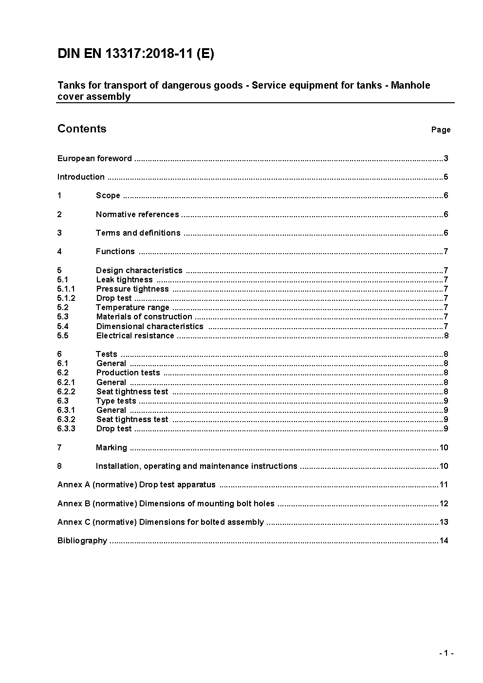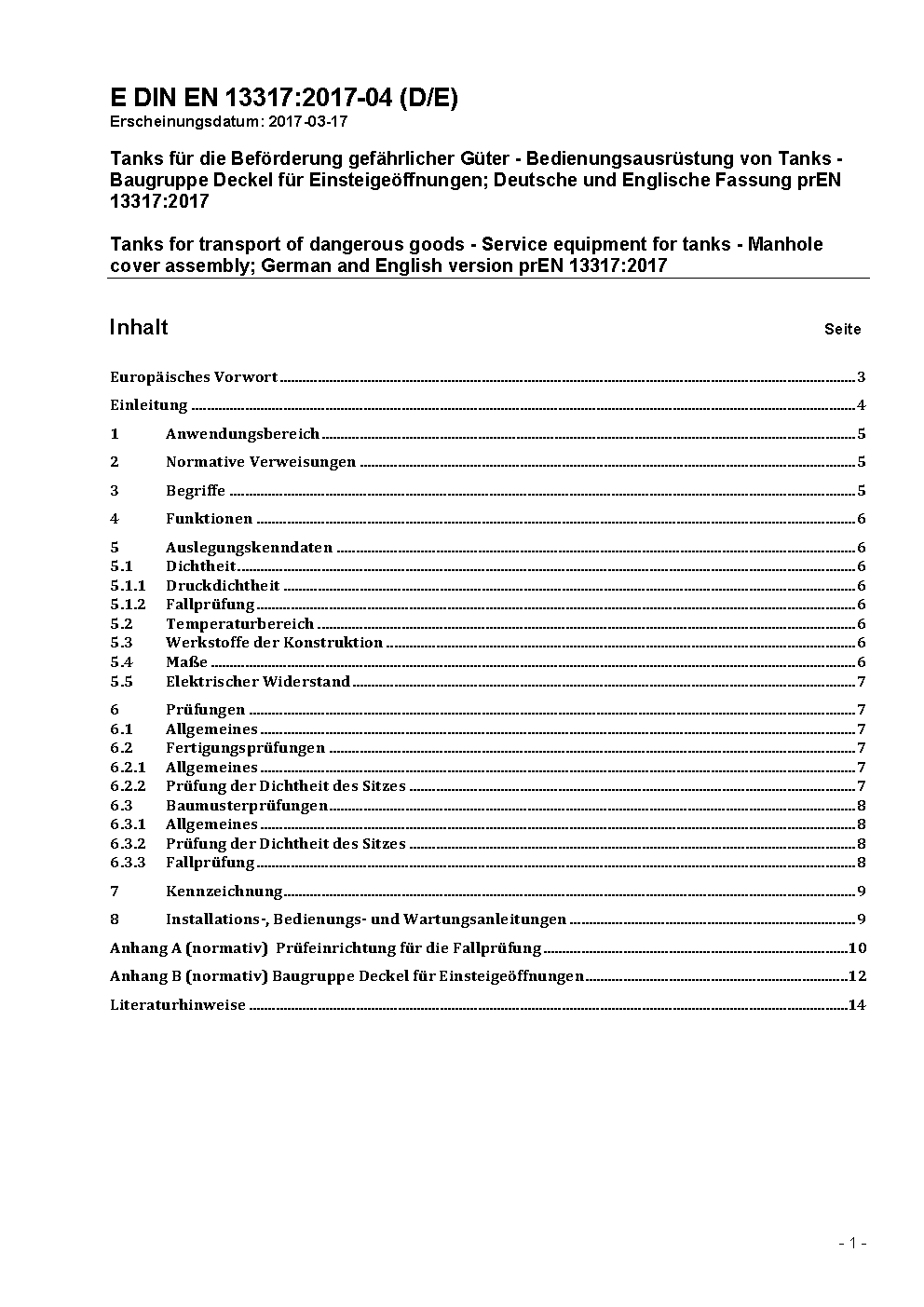 Tanks für die Beförderung gefährlicher Güter - Bedienungsausrüstung von Tanks - Baugruppe Deckel für Einsteigeöffnungen; Deutsche Fassung EN 13317:2002+A1:2006
