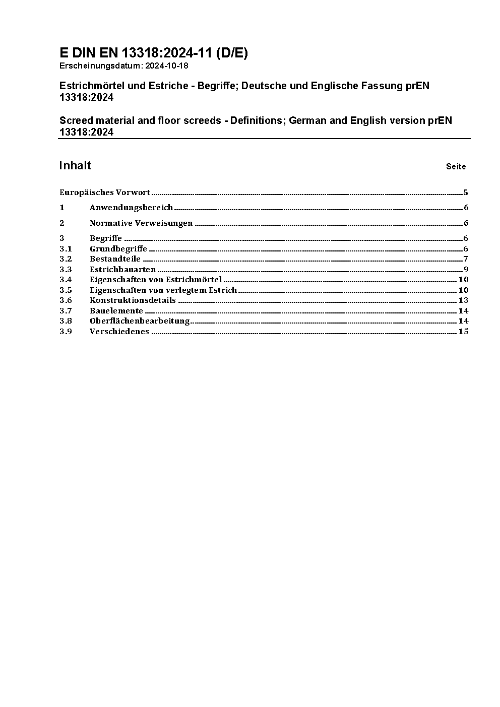 Estrichmörtel und Estriche - Begriffe; Dreisprachige Fassung EN 13318:2025