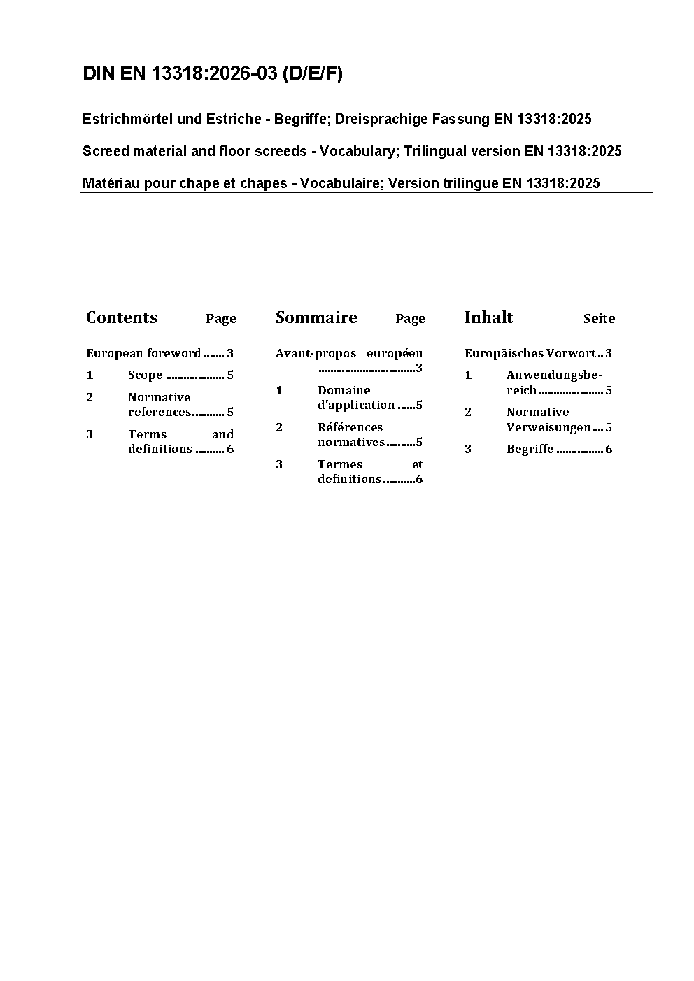 Screed material and floor screeds - Vocabulary; Trilingual version EN 13318:2025
