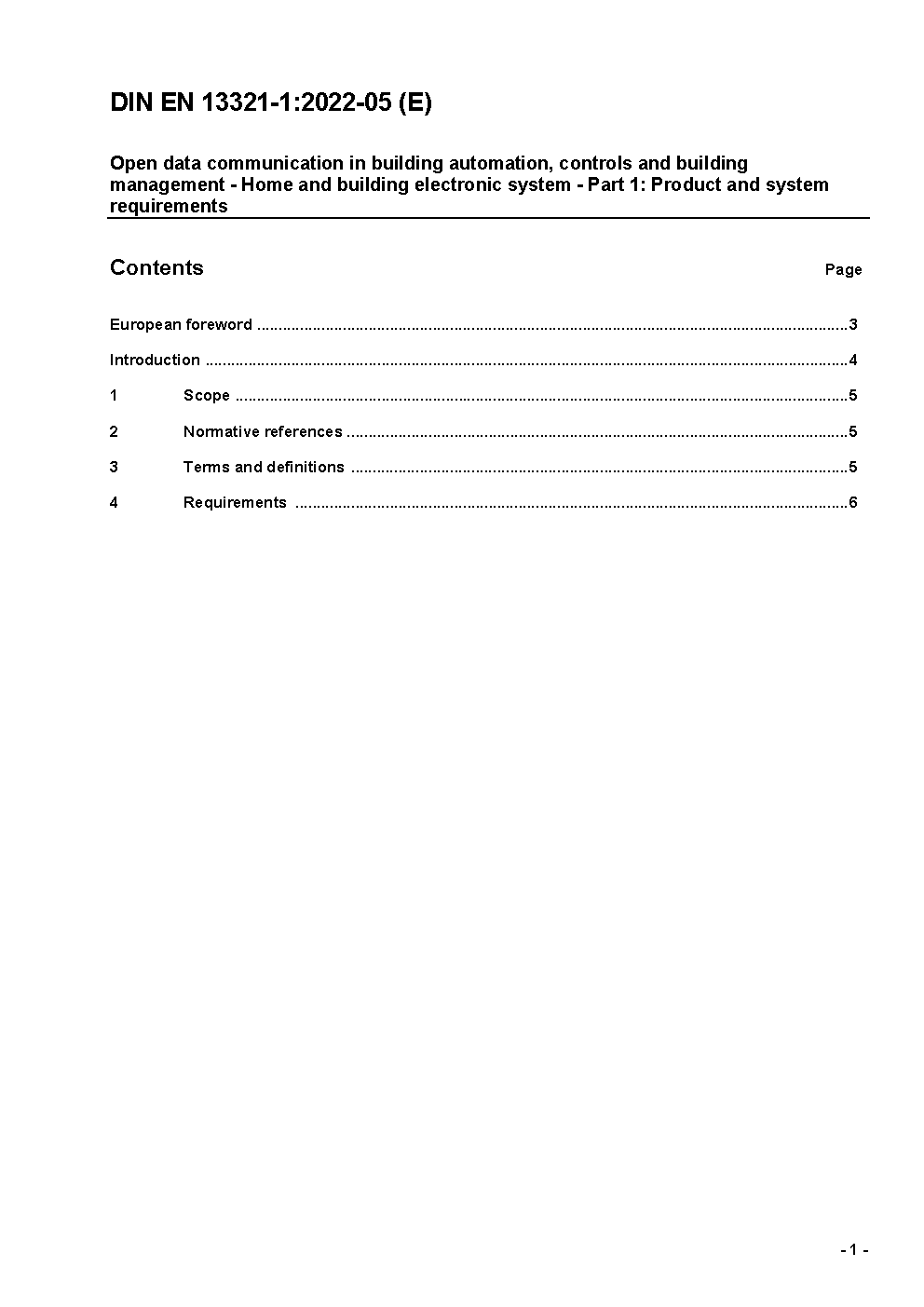 Open data communication in building automation, controls and building management - Home and building electronic system - Part 1: Product and system requirements; German version EN 13321-1:2006