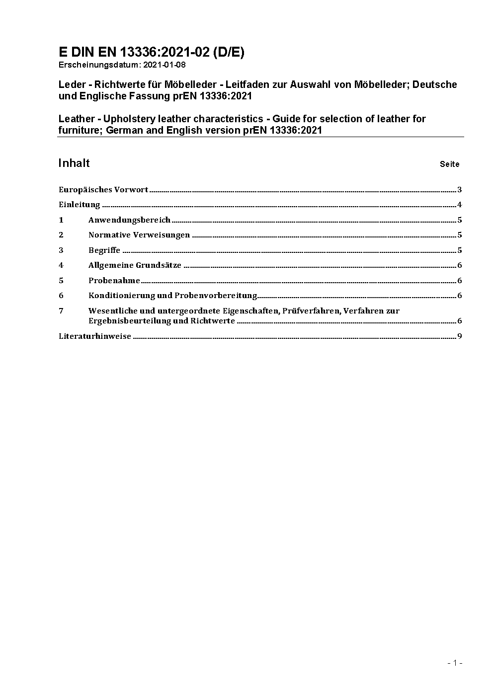 Leder - Richtwerte für Möbelleder - Leitfaden zur Auswahl von Möbelleder; Deutsche Fassung EN 13336:2012