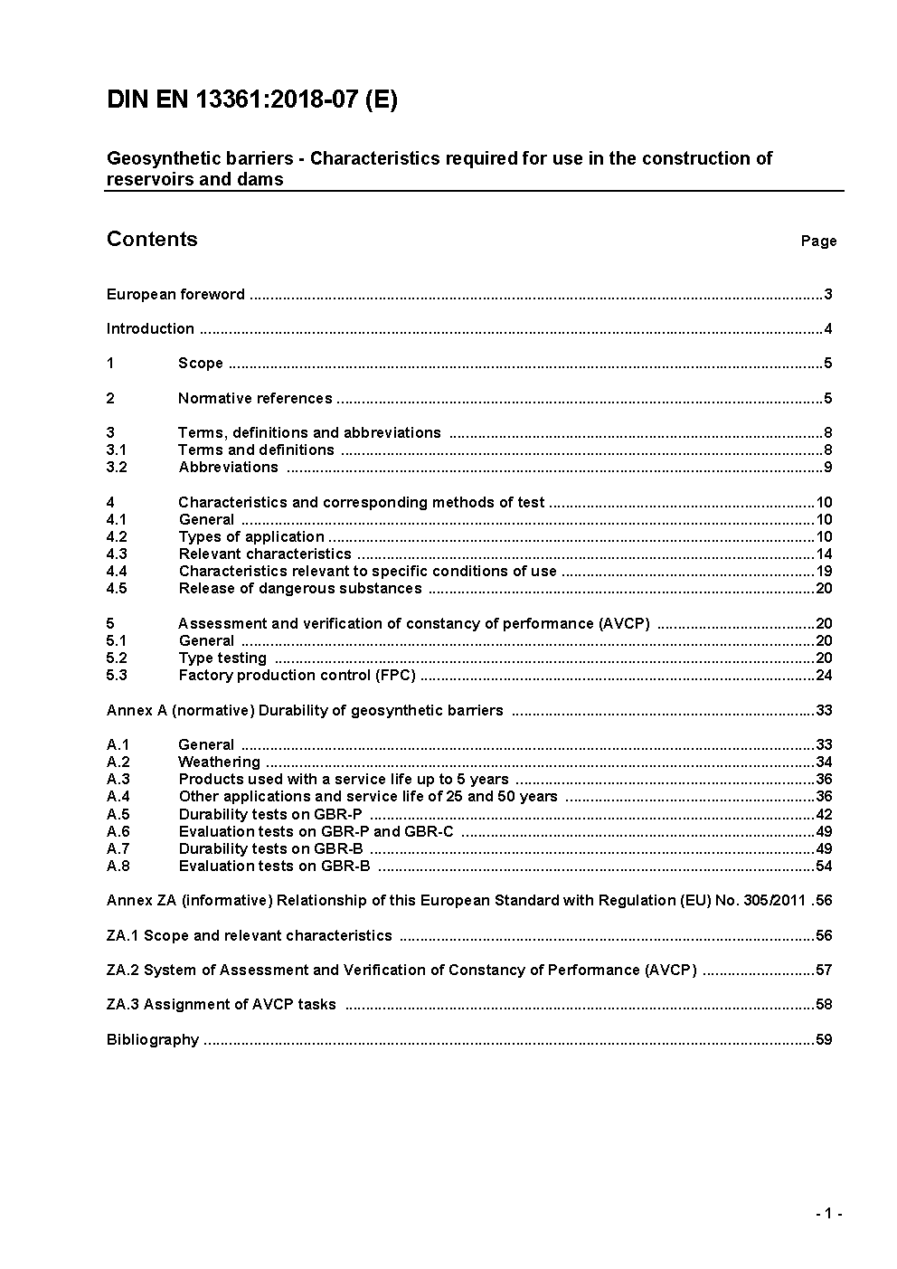 Geosynthetic barriers - Characteristics required for use in the construction of reservoirs and dams; German version EN 13361:2018