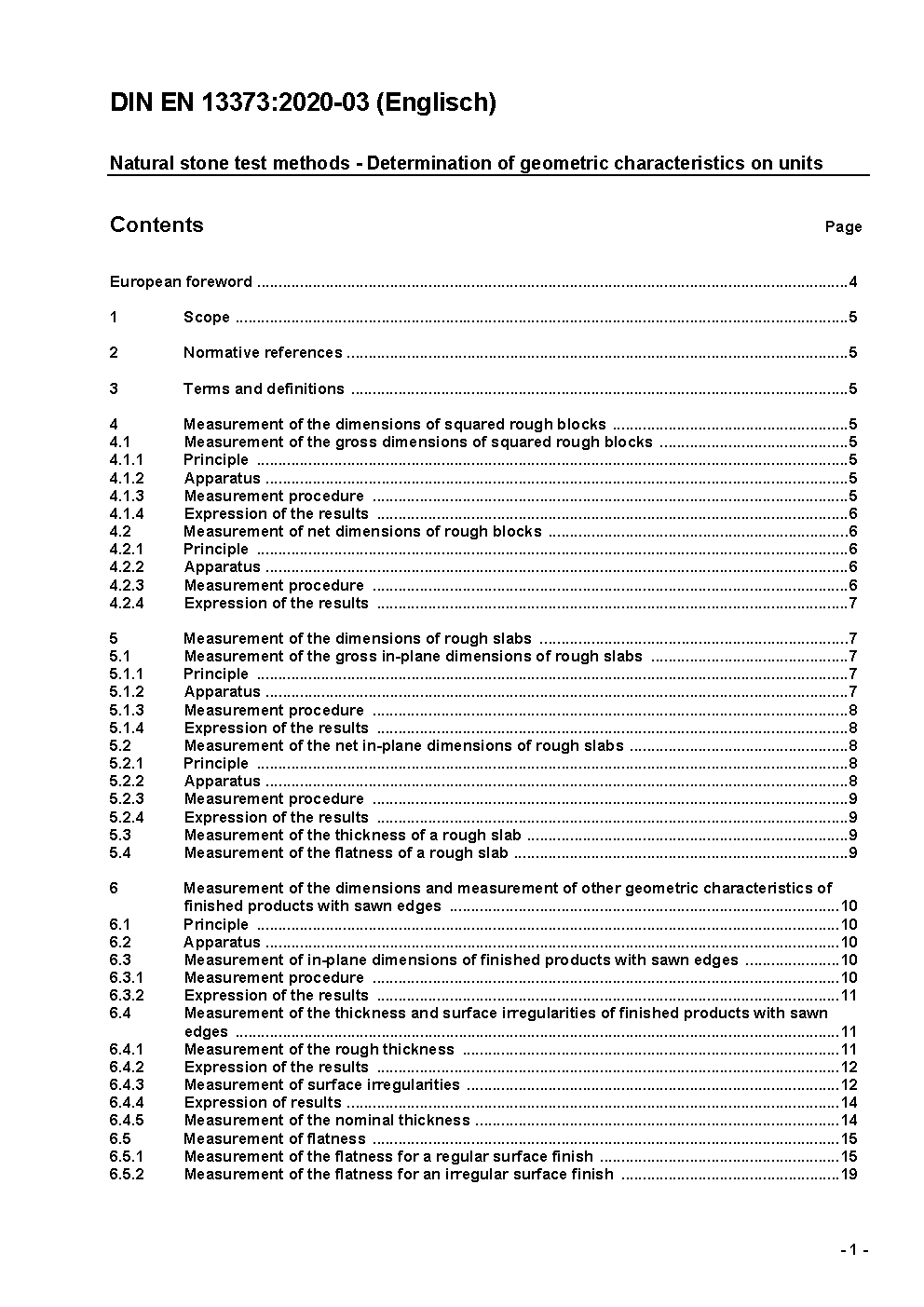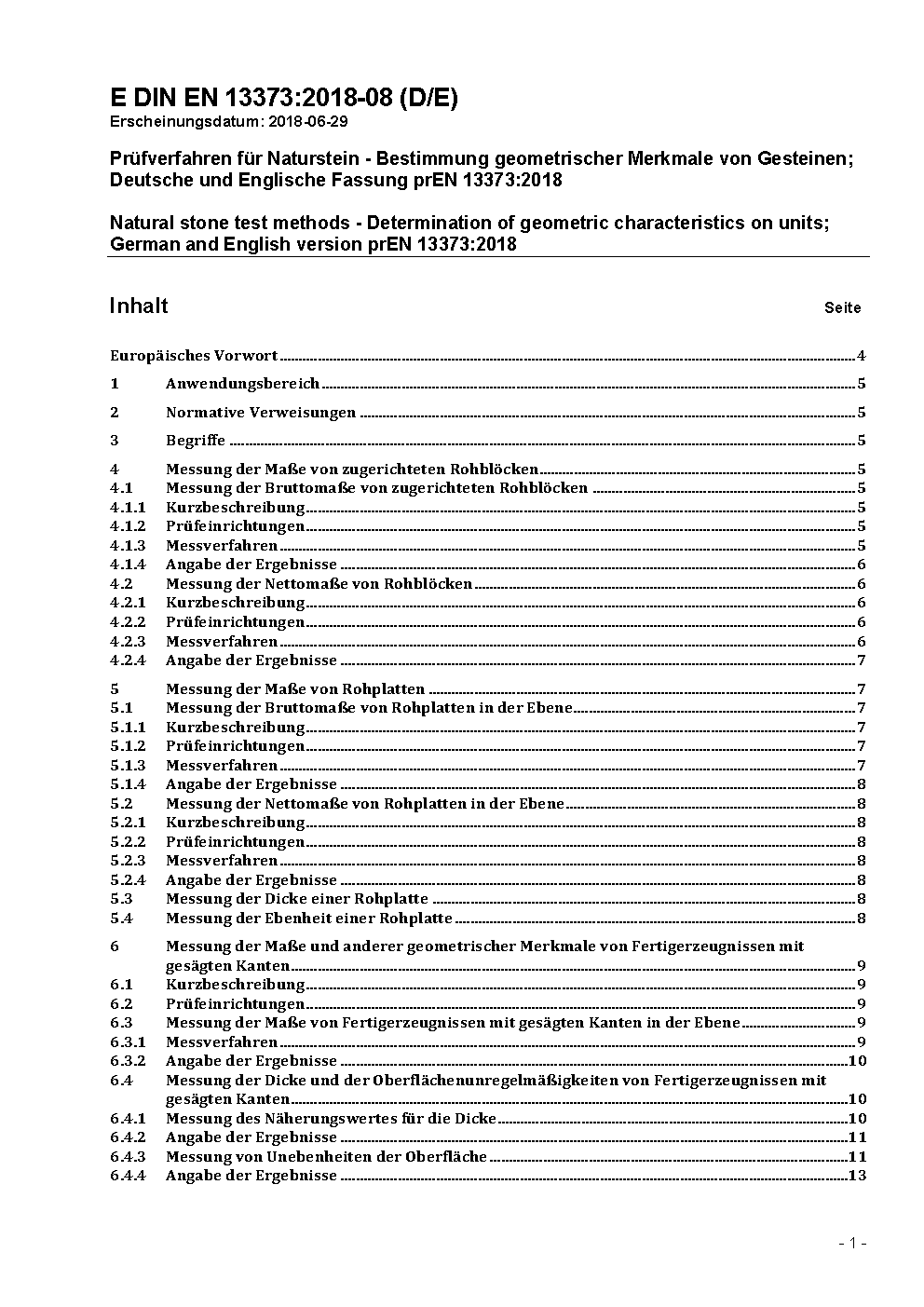 Prüfverfahren für Naturstein - Bestimmung geometrischer Merkmale von Gesteinen; Deutsche Fassung EN 13373:2003
