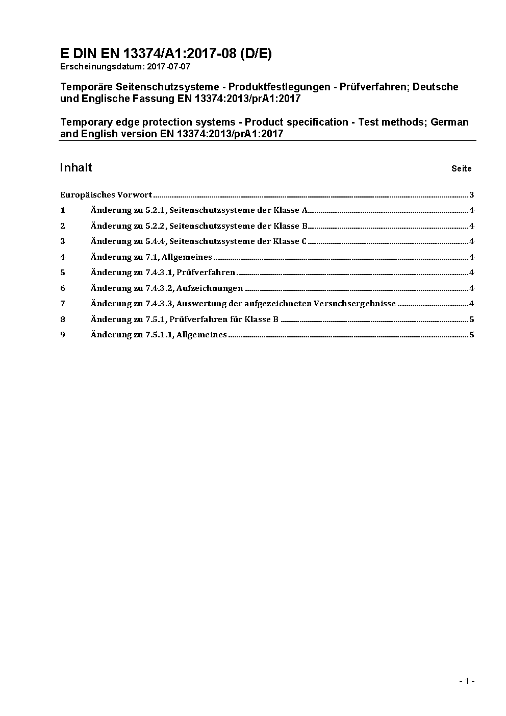 Temporäre Seitenschutzsysteme - Produktfestlegungen - Prüfverfahren; Deutsche Fassung EN 13374:2025