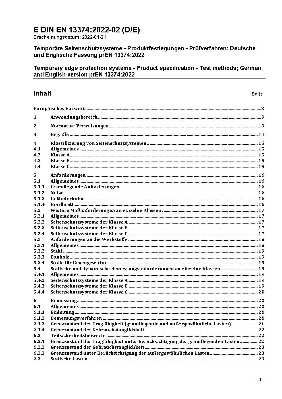 Temporary edge protection systems - Product specification - Test methods; German version EN 13374:2025