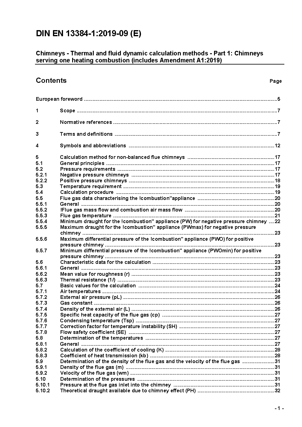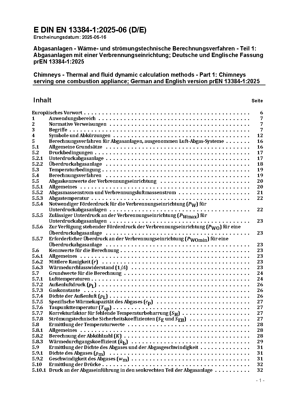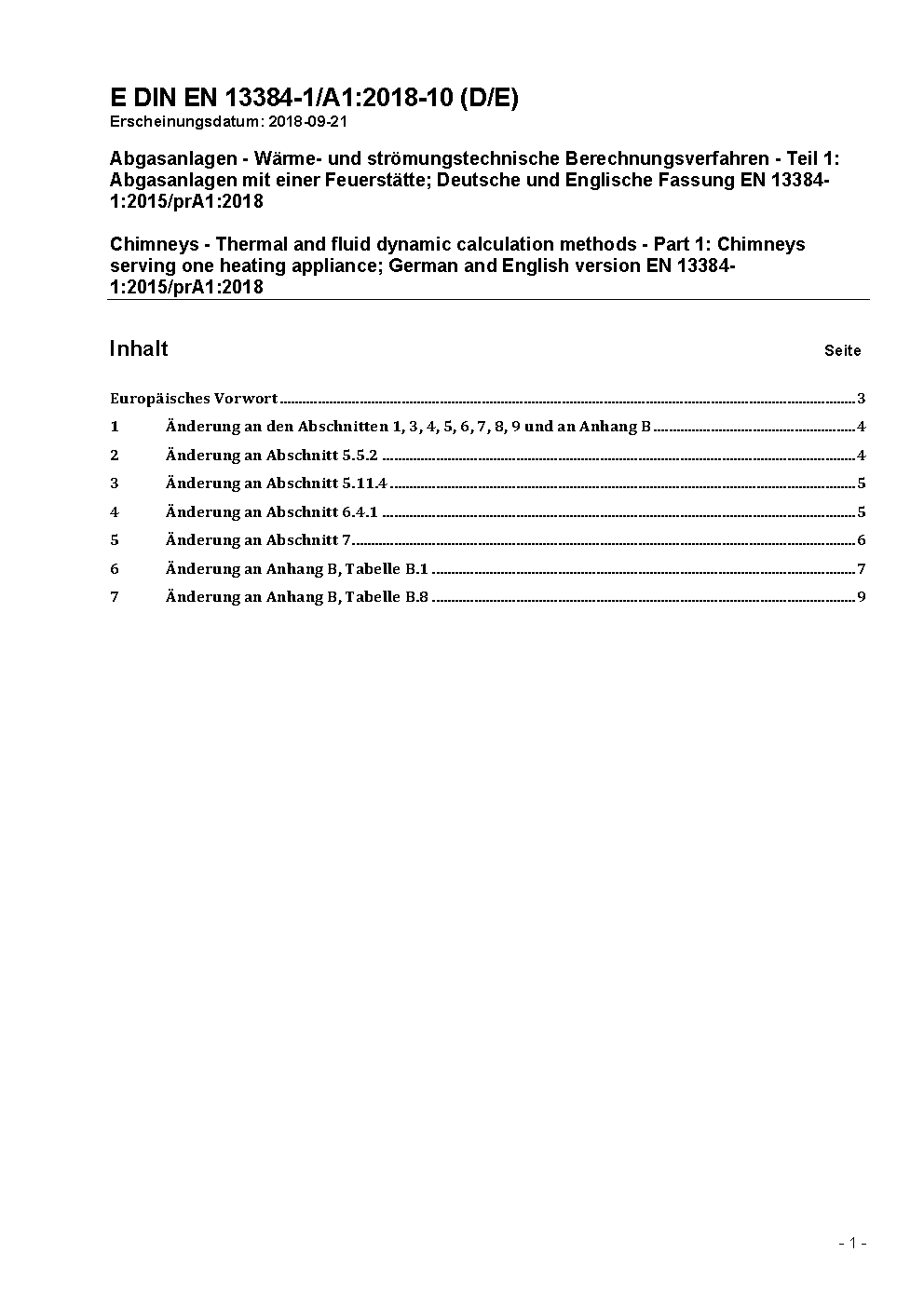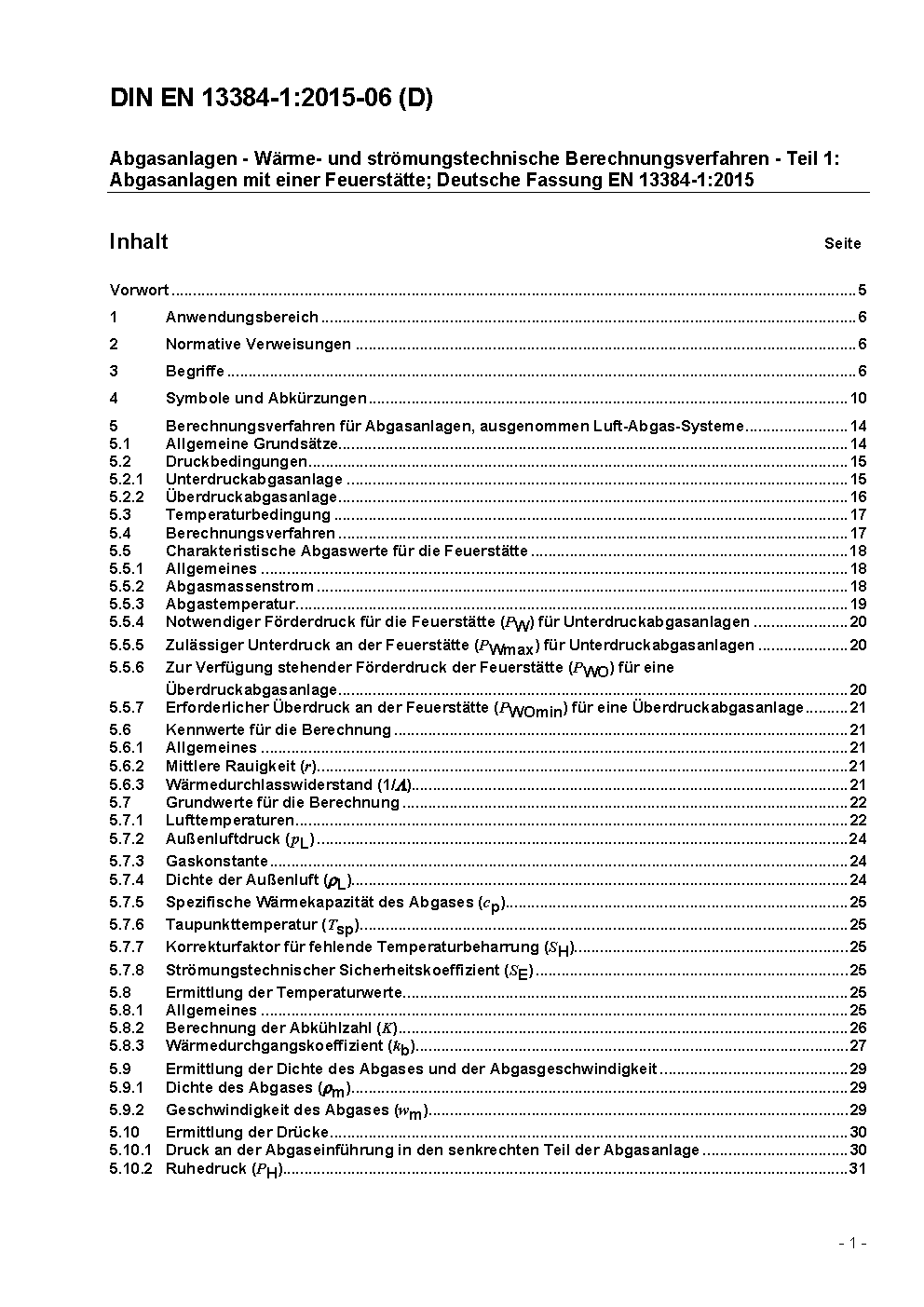Abgasanlagen - Wärme- und strömungstechnische Berechnungsverfahren - Teil 1: Abgasanlagen mit einer Feuerstätte; Deutsche Fassung EN 13384-1:2002+A2:2008