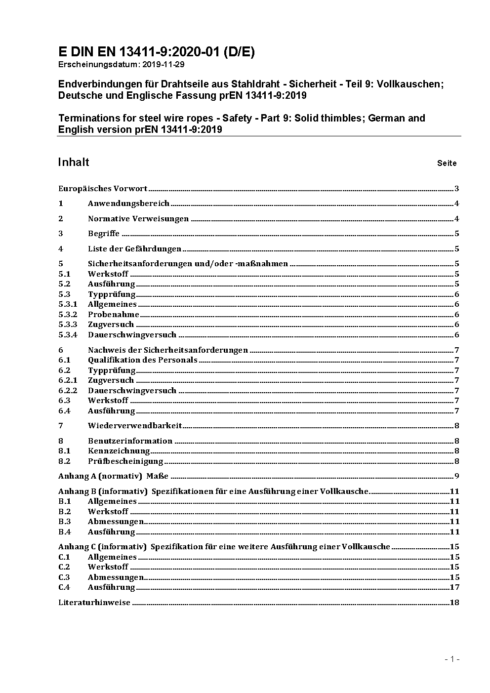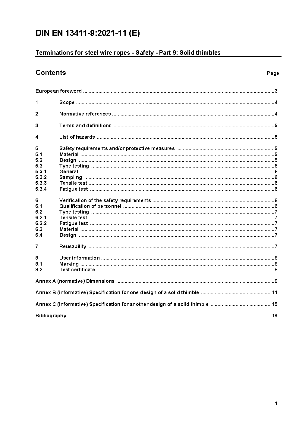 Terminations for steel wire ropes - Safety - Part 9: Solid thimbles; German version EN 13411-9:2021