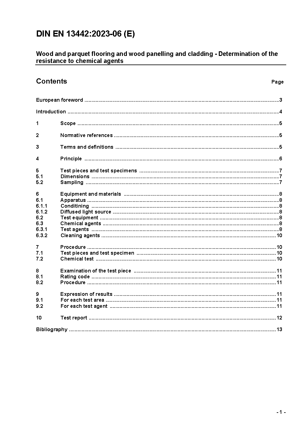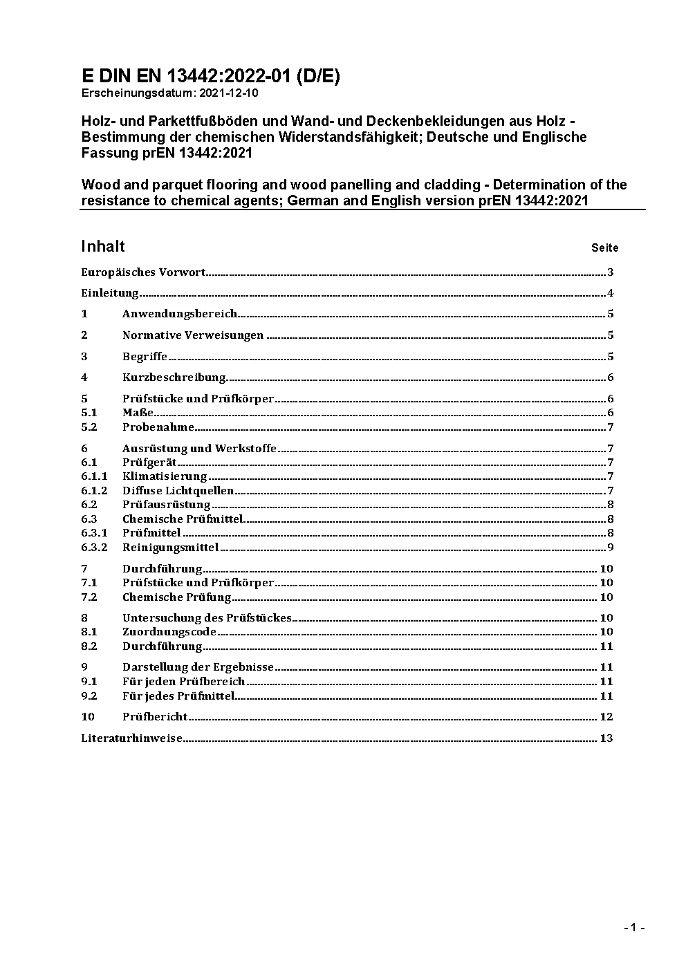Holzfußböden und Wand- und Deckenbekleidungen aus Holz - Bestimmung der chemischen Widerstandsfähigkeit; Deutsche Fassung EN 13442:2002