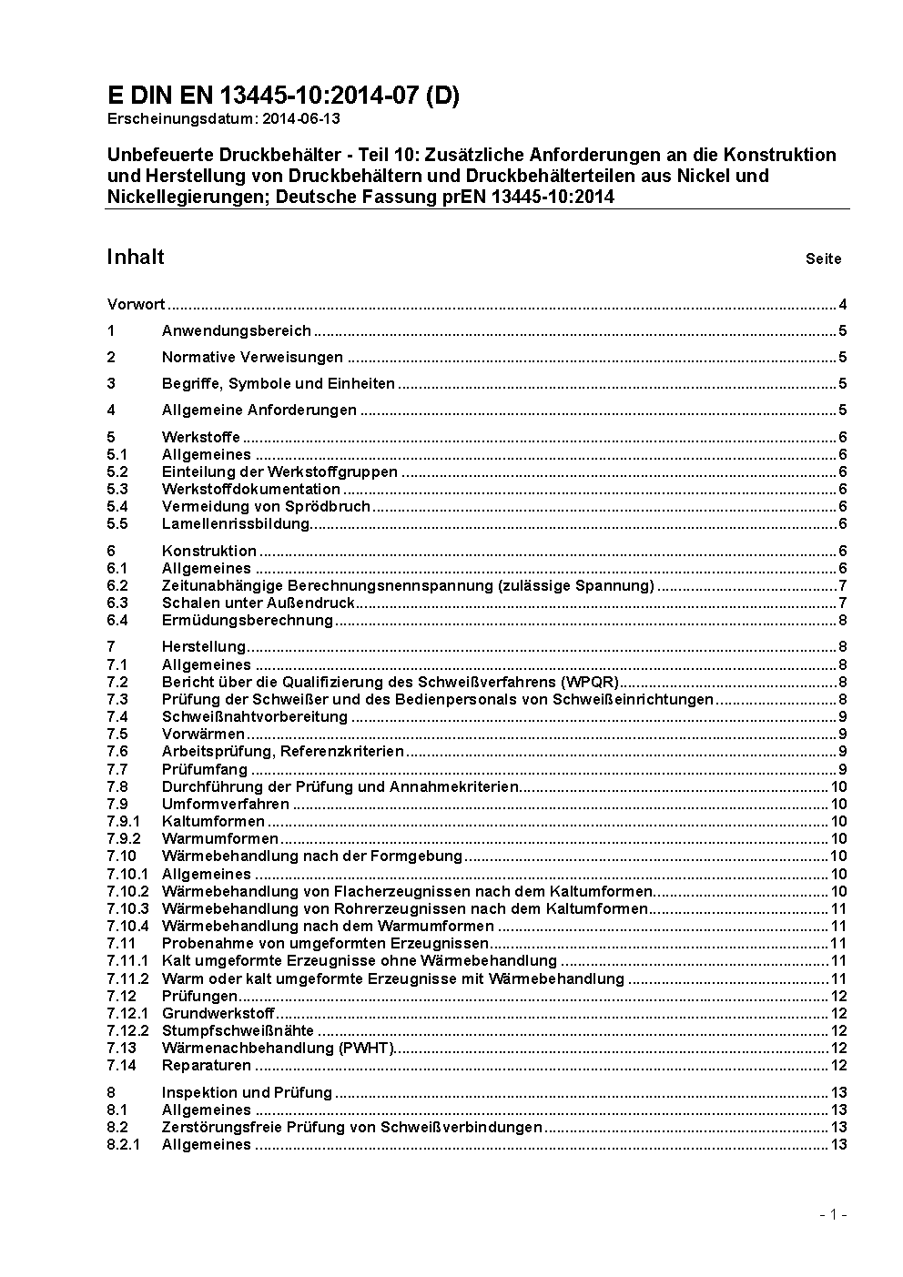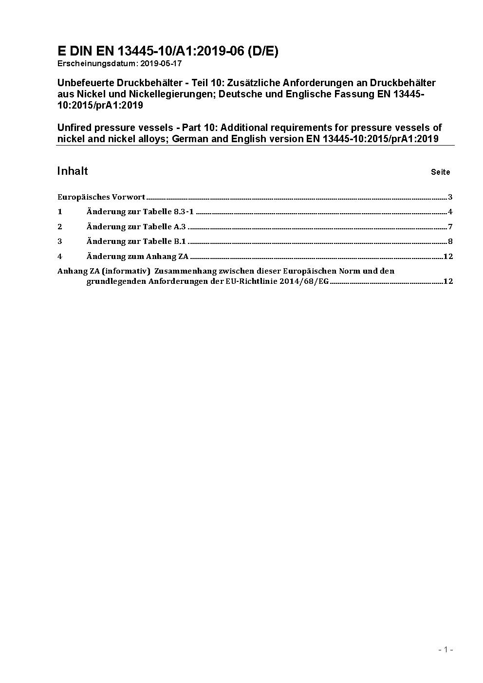 Unbefeuerte Druckbehälter - Teil 10: Zusätzliche Anforderungen an Druckbehälter aus Nickel und Nickellegierungen; Deutsche Fassung EN 13445-10:2015