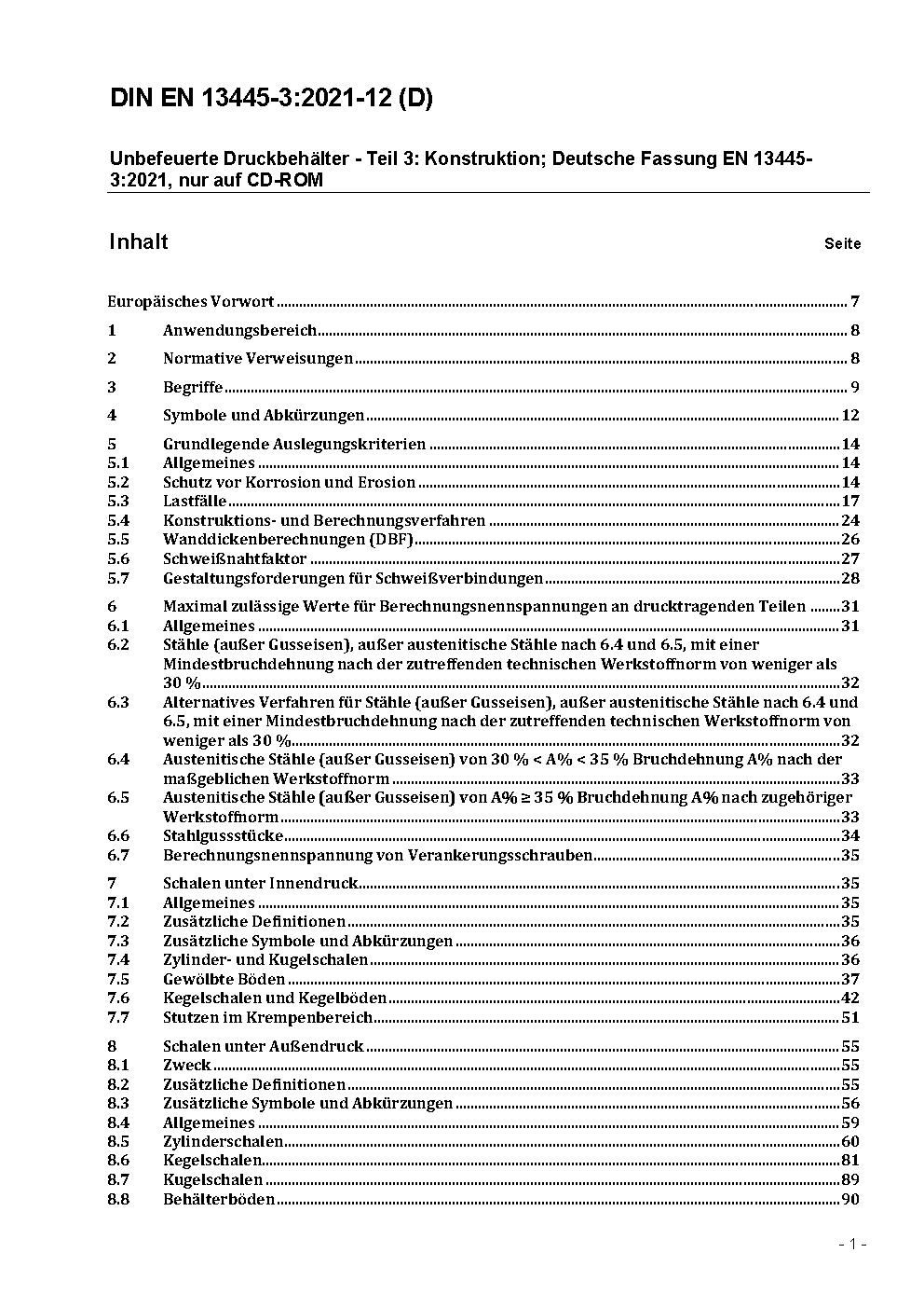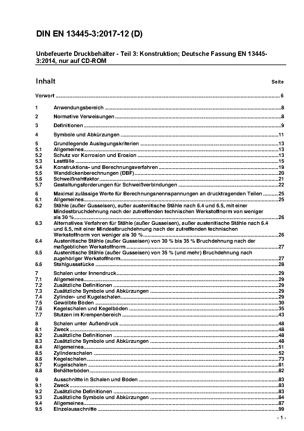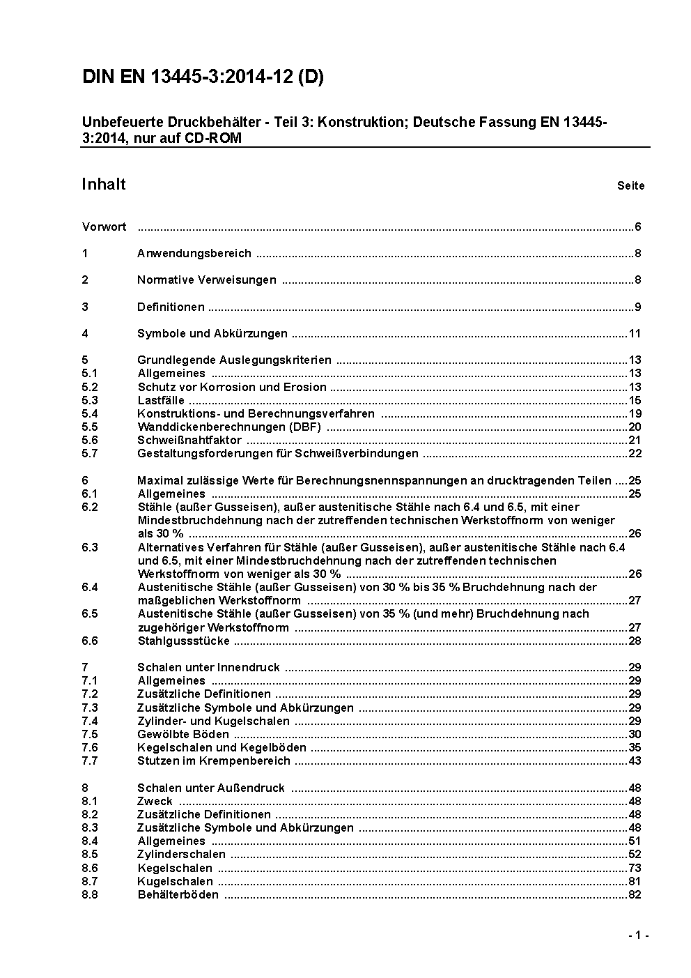 Unbefeuerte Druckbehälter - Teil 3: Konstruktion; Deutsche Fassung EN 13445-3:2014, nur auf CD-ROM / Achtung: CD-ROM