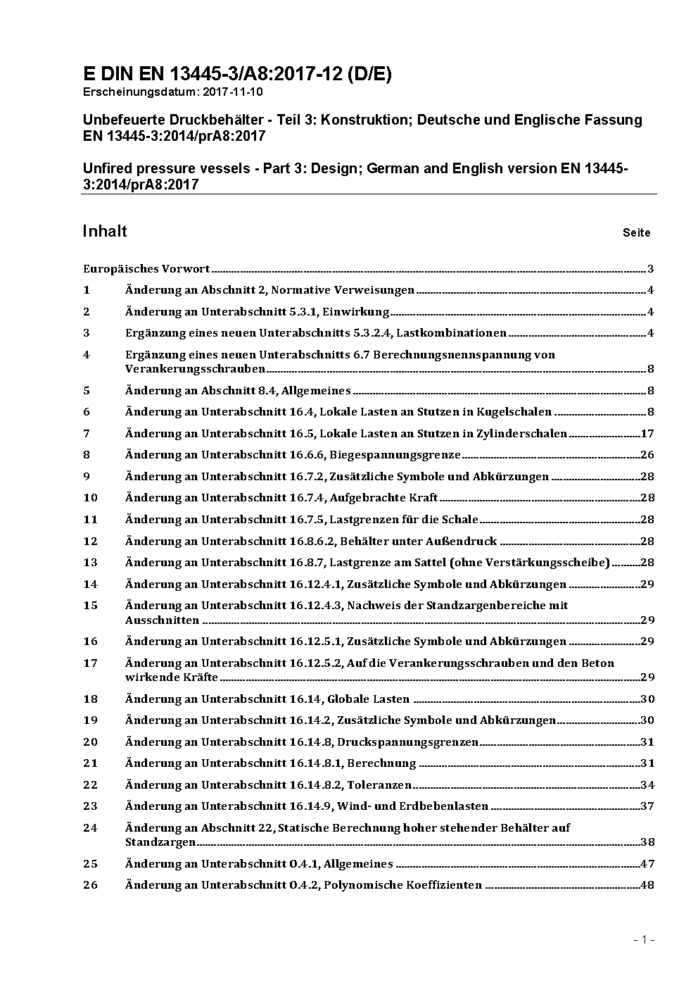 Unfired pressure vessels - Part 3: Design; German version EN 13445-3:2014, only on CD-ROM.