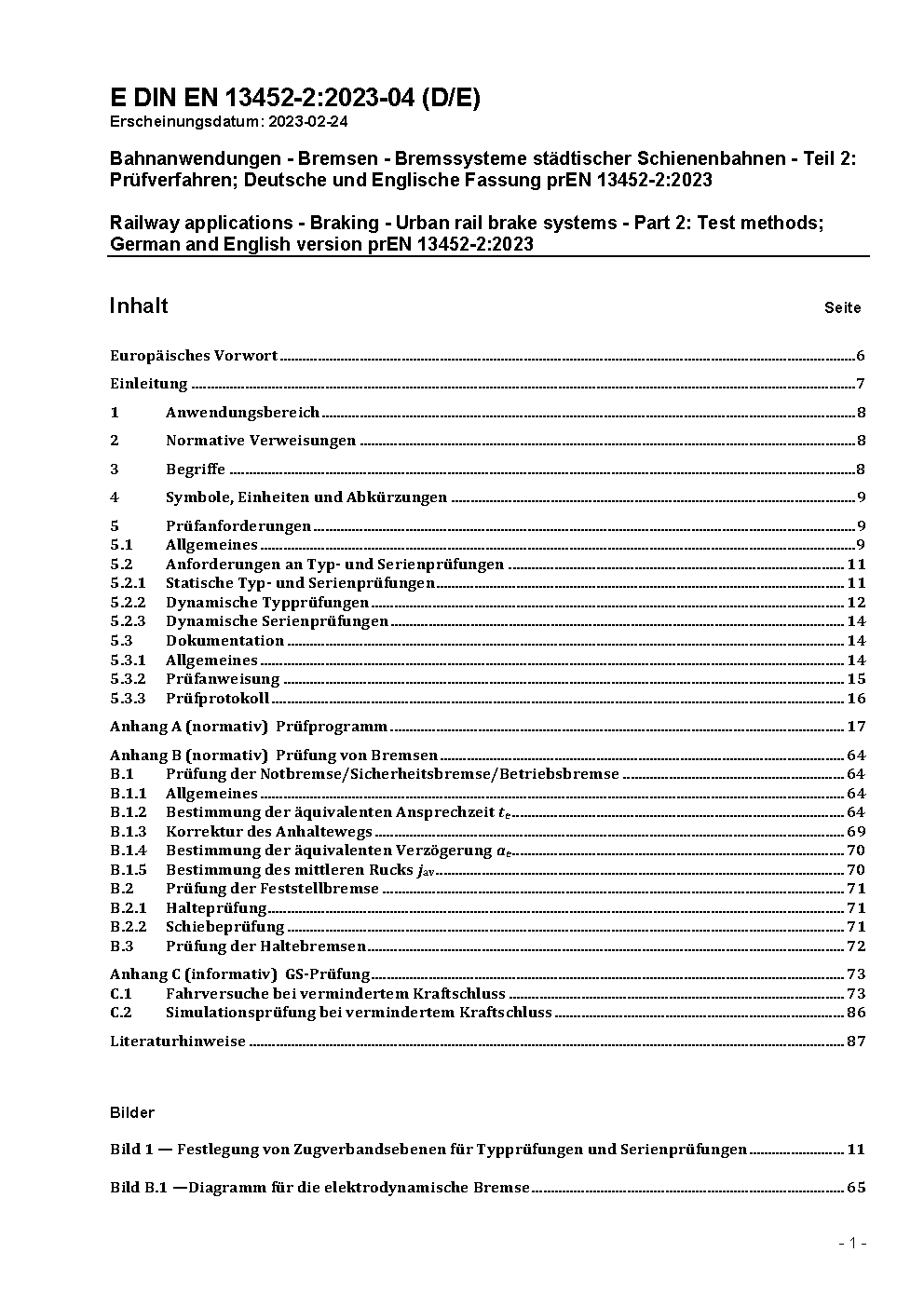 Bahnanwendungen - Bremsen; Bremssysteme des öffentlichen Nahverkehrs - Teil 2: Prüfverfahren; Deutsche Fassung prEN 13452-2:1999