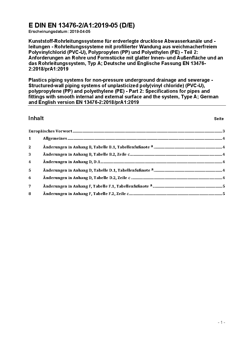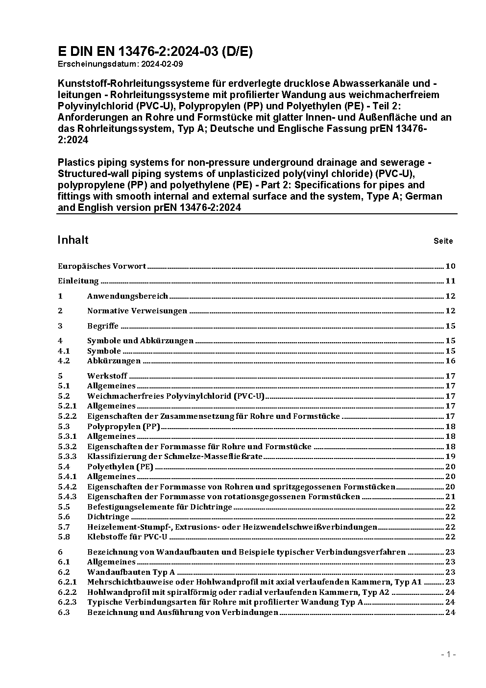 Prévu pour remplacer DIN EN 13476-2 (2007-08).