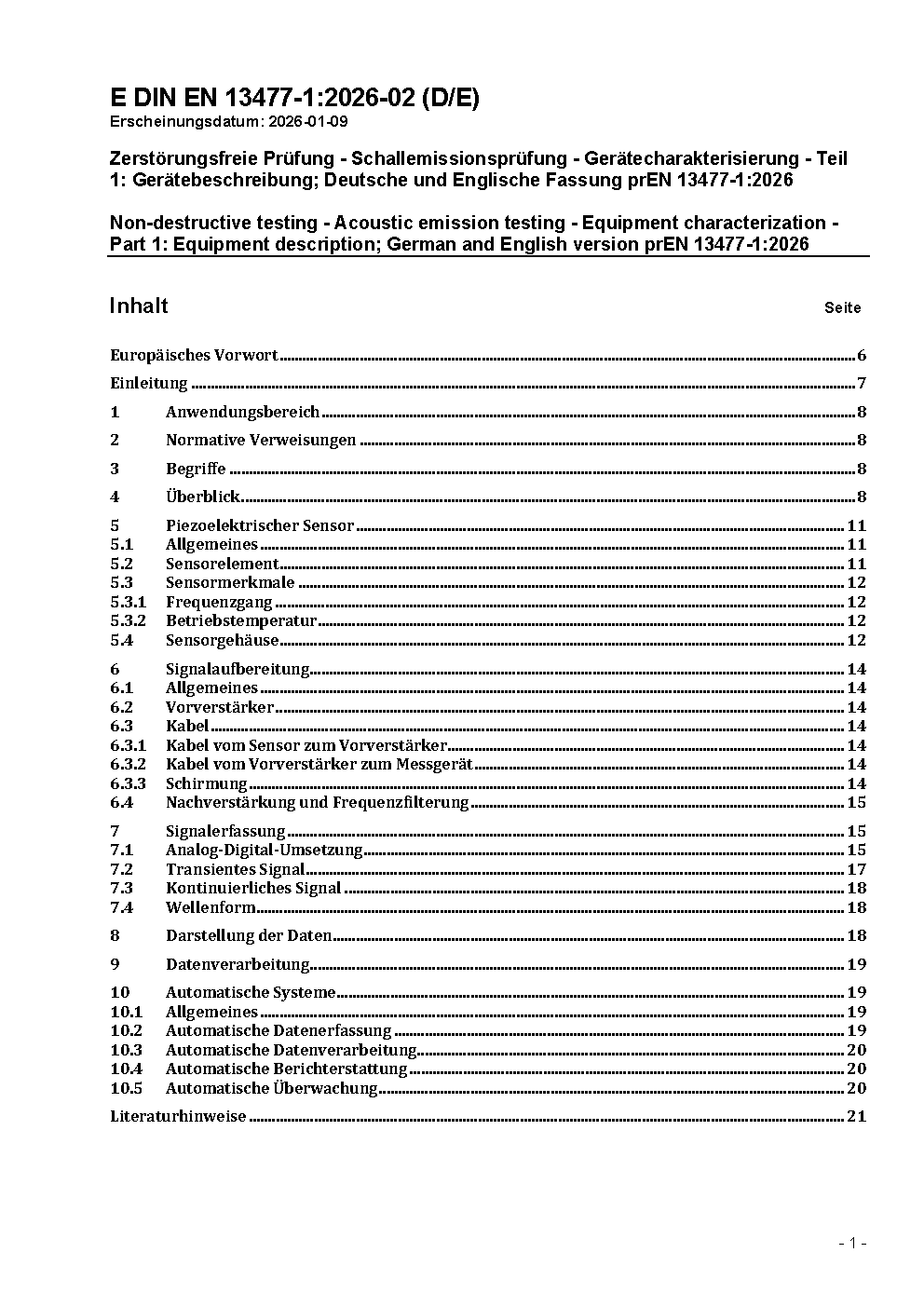 Zerstörungsfreie Prüfung - Schallemissionsprüfung - Charakterisierung der Prüfausrüstung - Teil 1: Gerätebeschreibung; Deutsche Fassung EN 13477-1:2001
