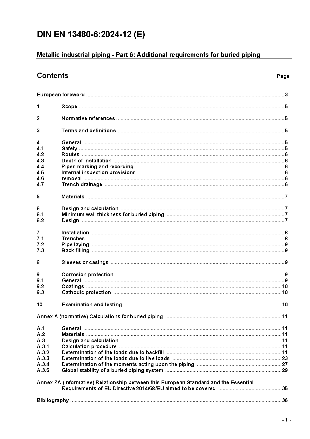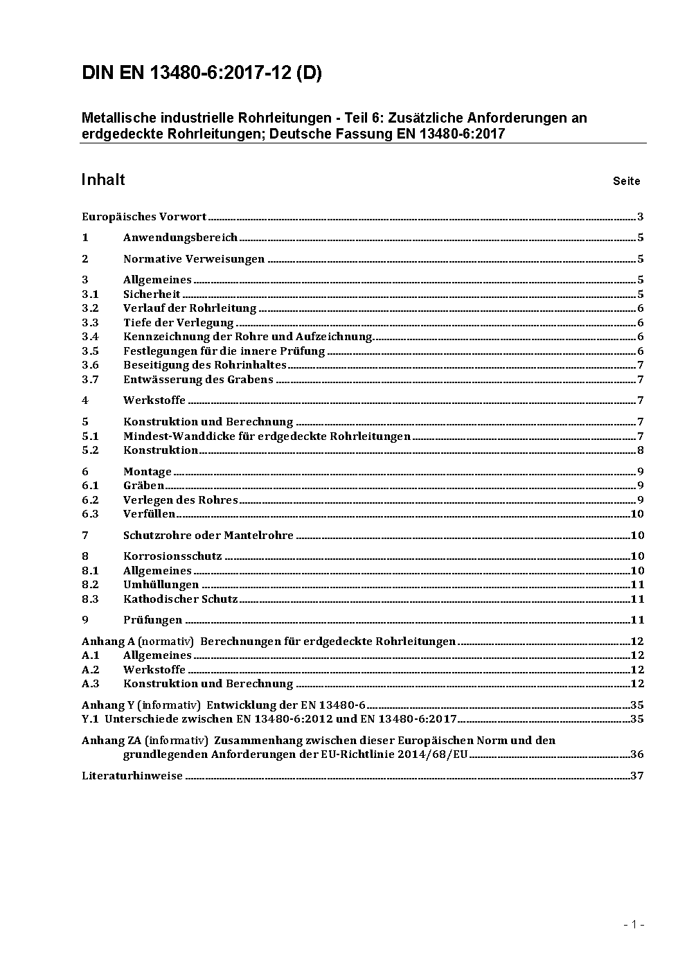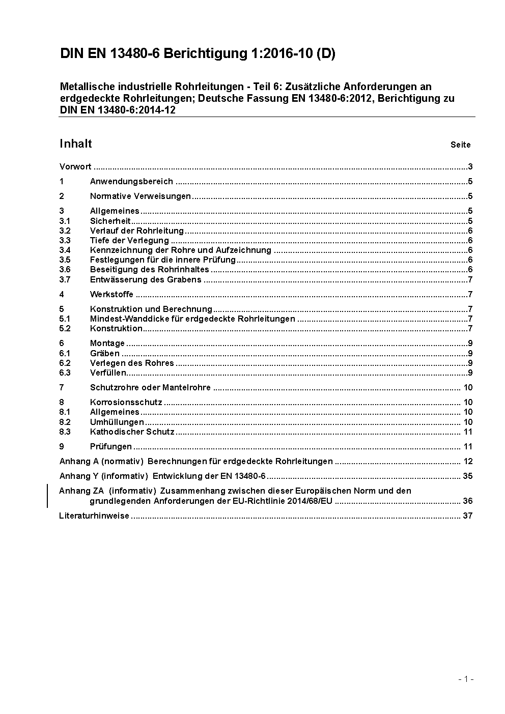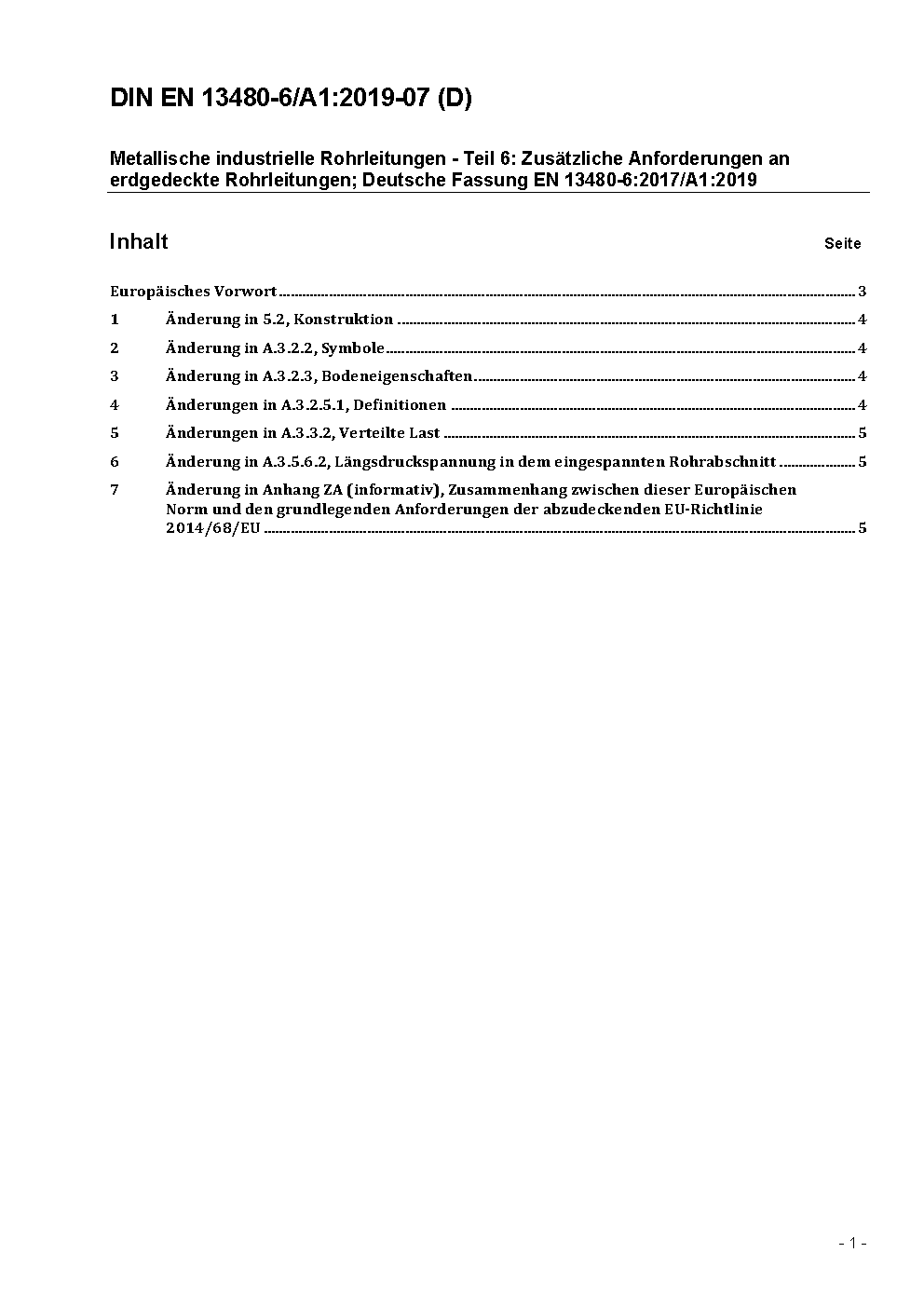 Metallische industrielle Rohrleitungen - Teil 6: Zusätzliche Anforderungen an erdgedeckte Rohrleitungen; Deutsche und Englische Fassung EN 13480-6:2017/prA1:2018