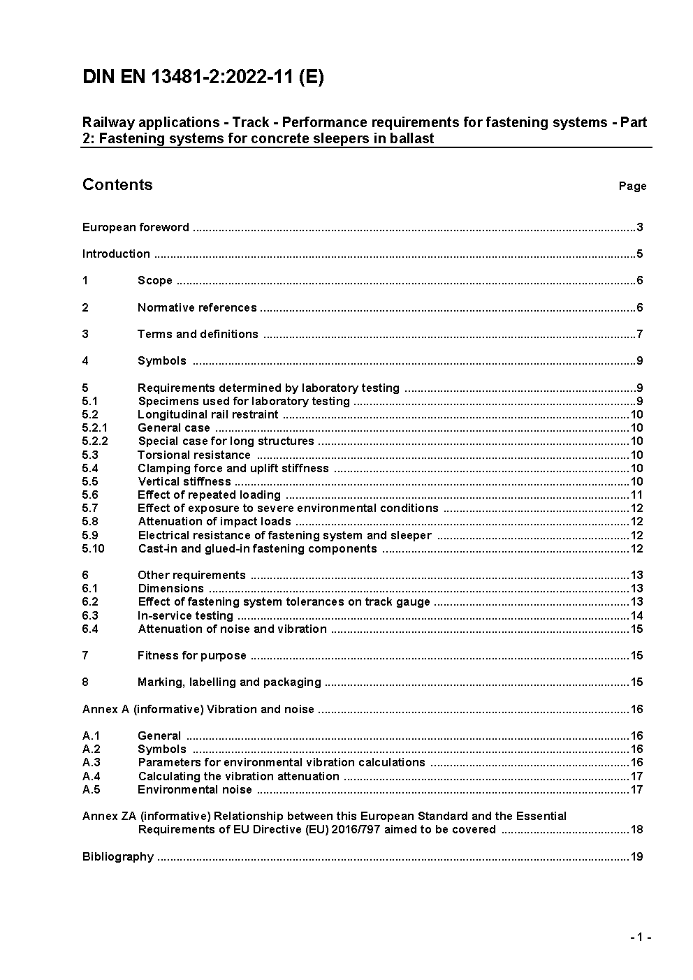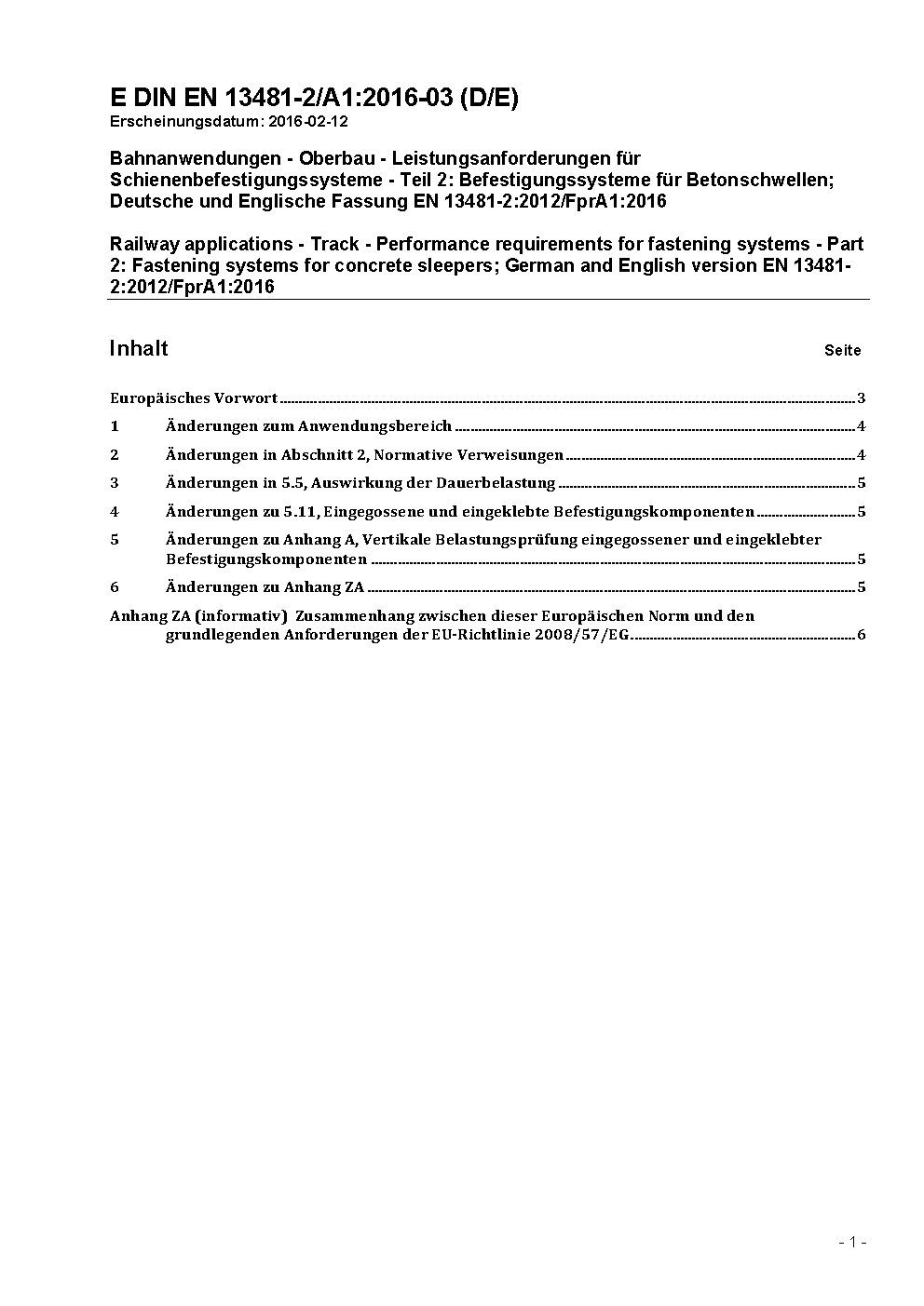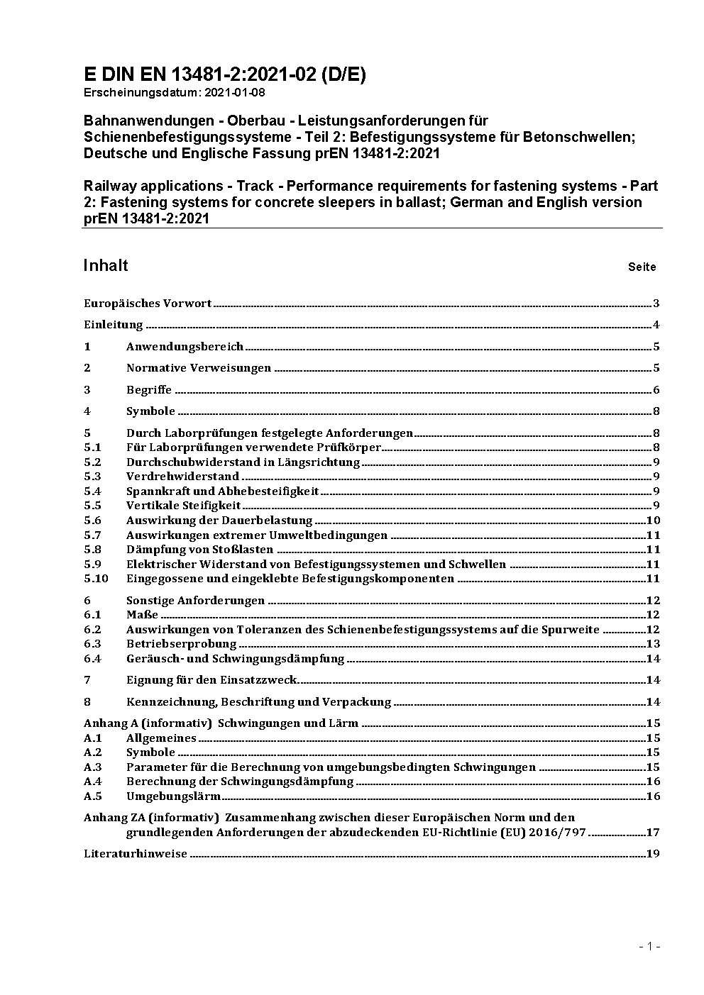 Railway applications - Track; Performance requirements for fastening systems - Part 2: Fastening systems for concrete sleepers; German version EN 13481-2:2002