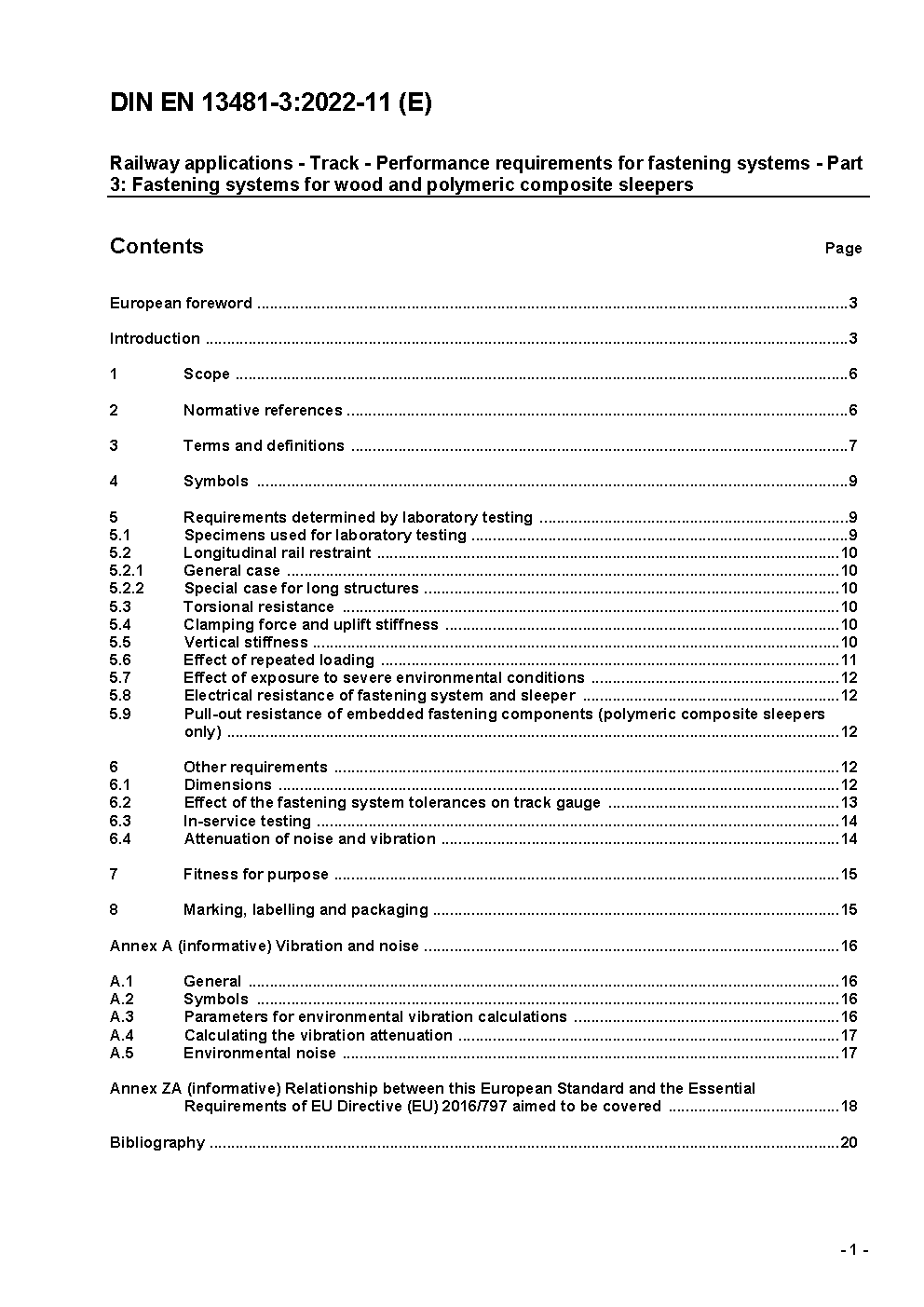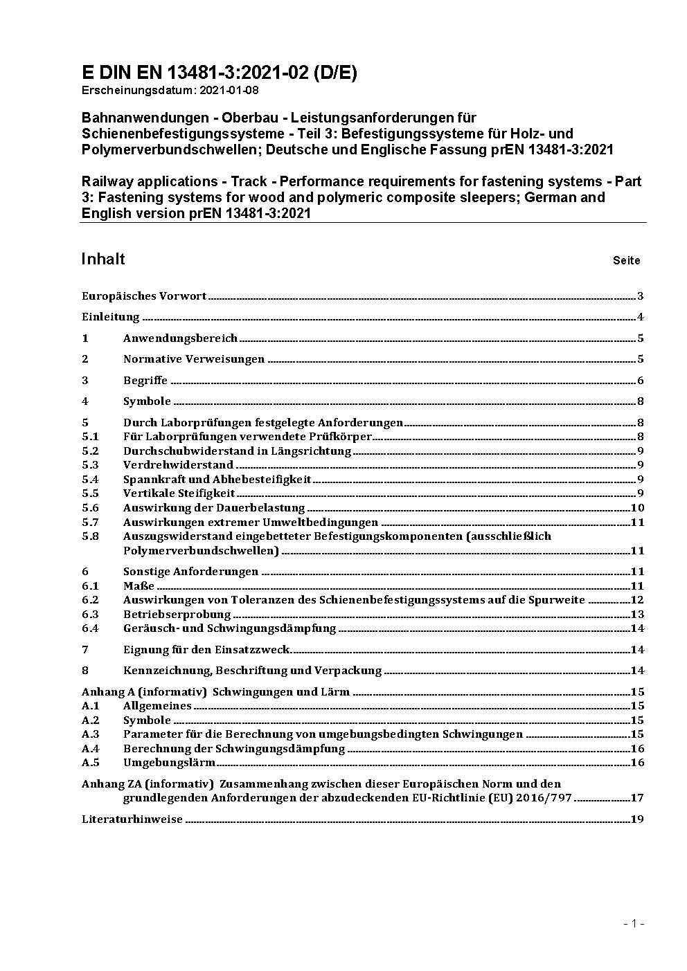 Railway applications - Track; Performance requirements for fastening systems - Part 3: Fastening systems for wood sleepers; German version EN 13481-3:2002