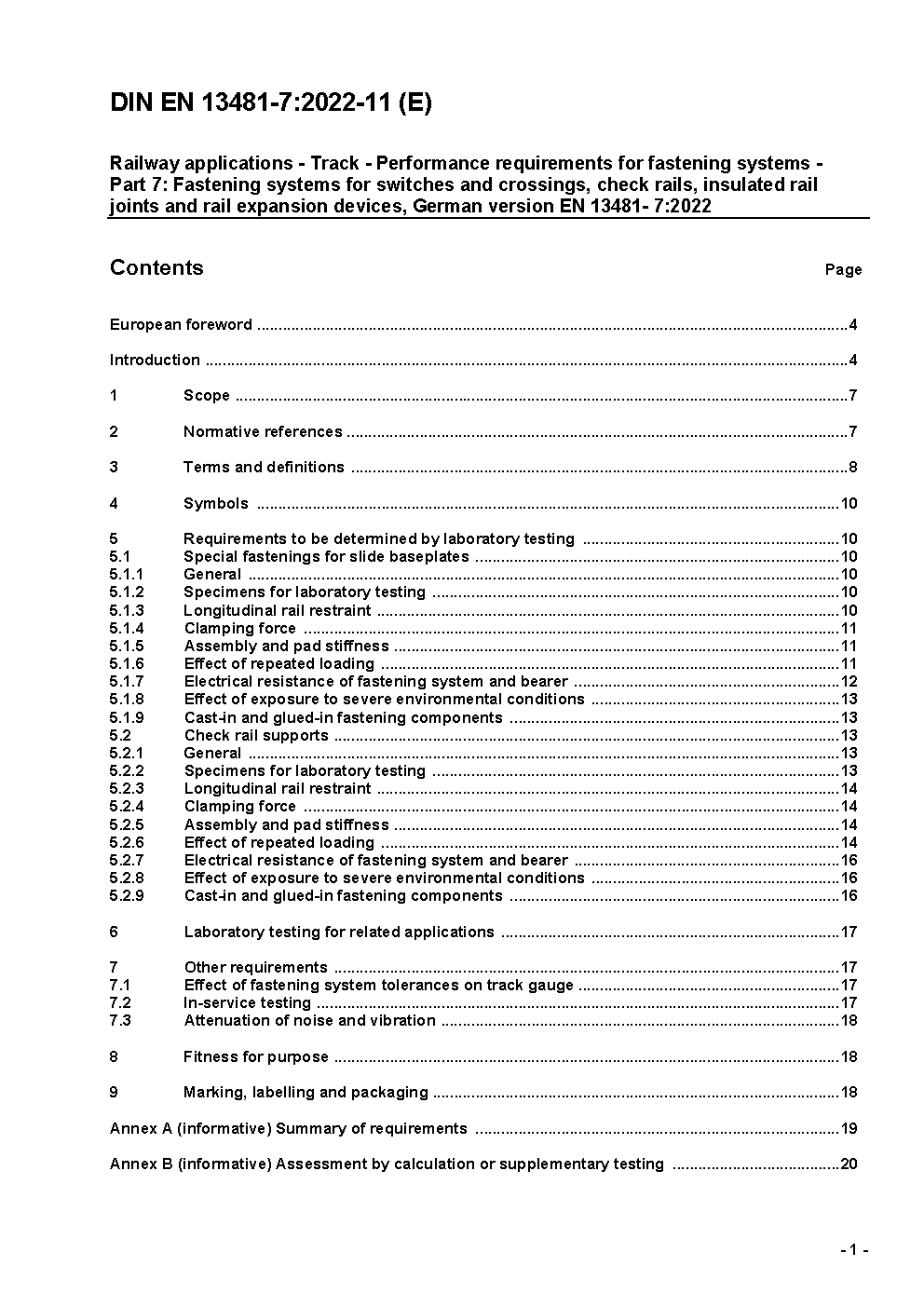 Railways applications - Track; Performance requirements for fastening systems - Part 7: Special fastening systems for switches and crossings and check rails; German version EN 13481-7:2003