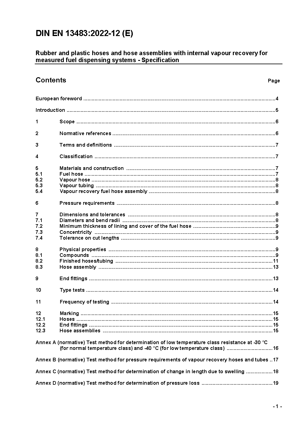 Rubber and plastic hoses and hose assemblies with internal vapour recovery for measured fuel dispensing systems - Specification; German version EN 13483:2013