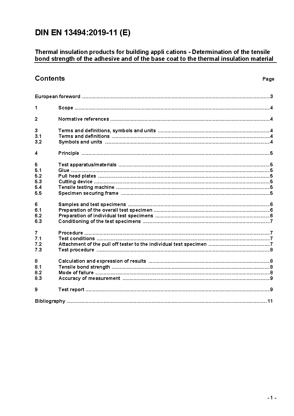 Thermal insulation products for building applications - Determination of the tensile bond strength of the adhesive and of the base coat to the thermal insulation material; German version EN 13494:2002