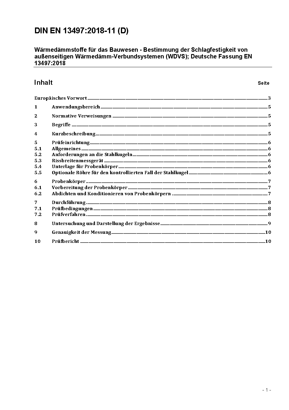 Wärmedämmstoffe für das Bauwesen - Bestimmung der Schlagfestigkeit von außenseitigen Wärmedämm-Verbundsystemen (WDVS); Deutsche und Englische Fassung prEN 13497:2017
