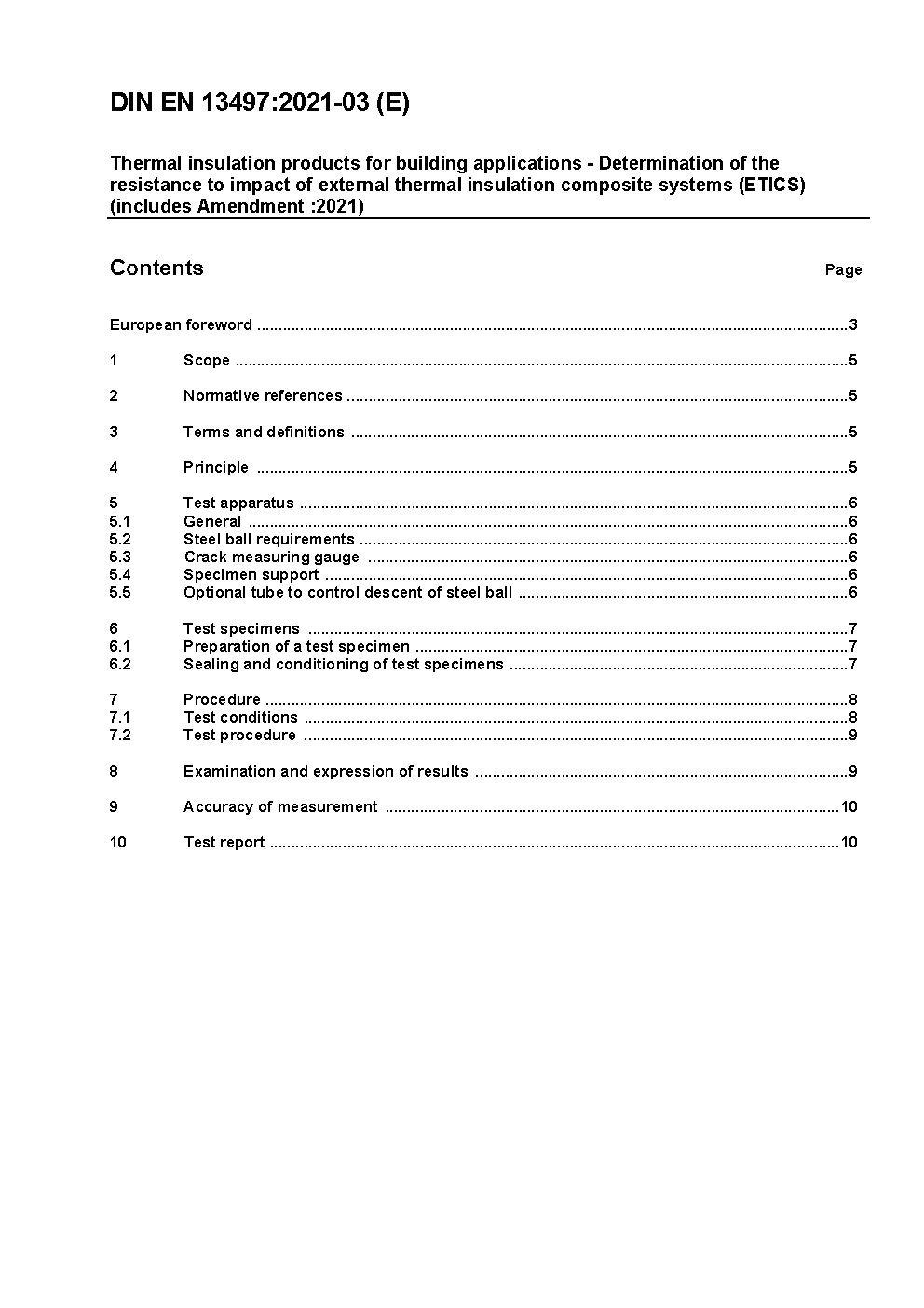 Thermal insulation products for building applications - Determination of the resistance to impact of external thermal insulation composite systems (ETICS); German and English version prEN 13497:2017