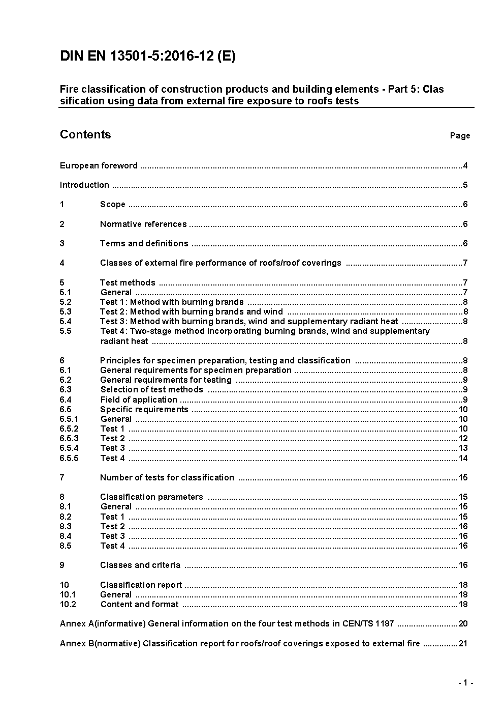 Prévu pour remplacer DIN EN 13501-5 (2010-02).