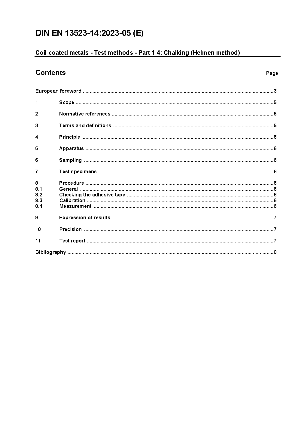 Coil coated metals - Test methods - Part 14: Chalking (Helmen method); German version prEN 13523-14:1999