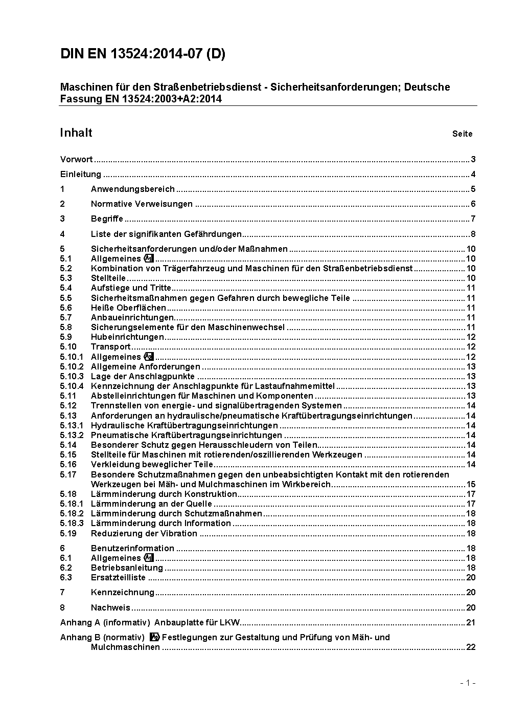 Maschinen für den Straßenbetriebsdienst - Sicherheitsanforderungen; Deutsche Fassung EN 13524:2003+A1:2009