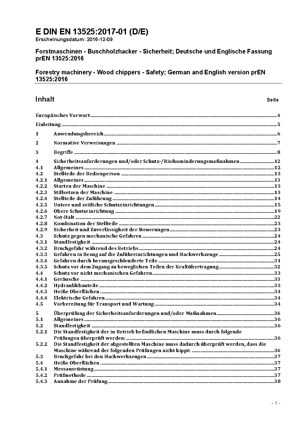 Forstmaschinen - Buschholzhacker - Sicherheit; Deutsche Fassung EN 13525:2005+A1:2007