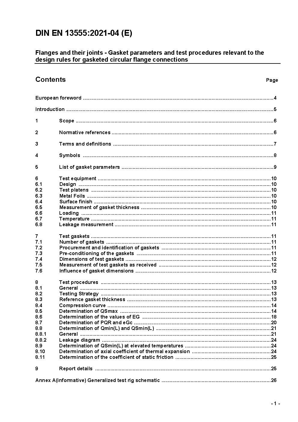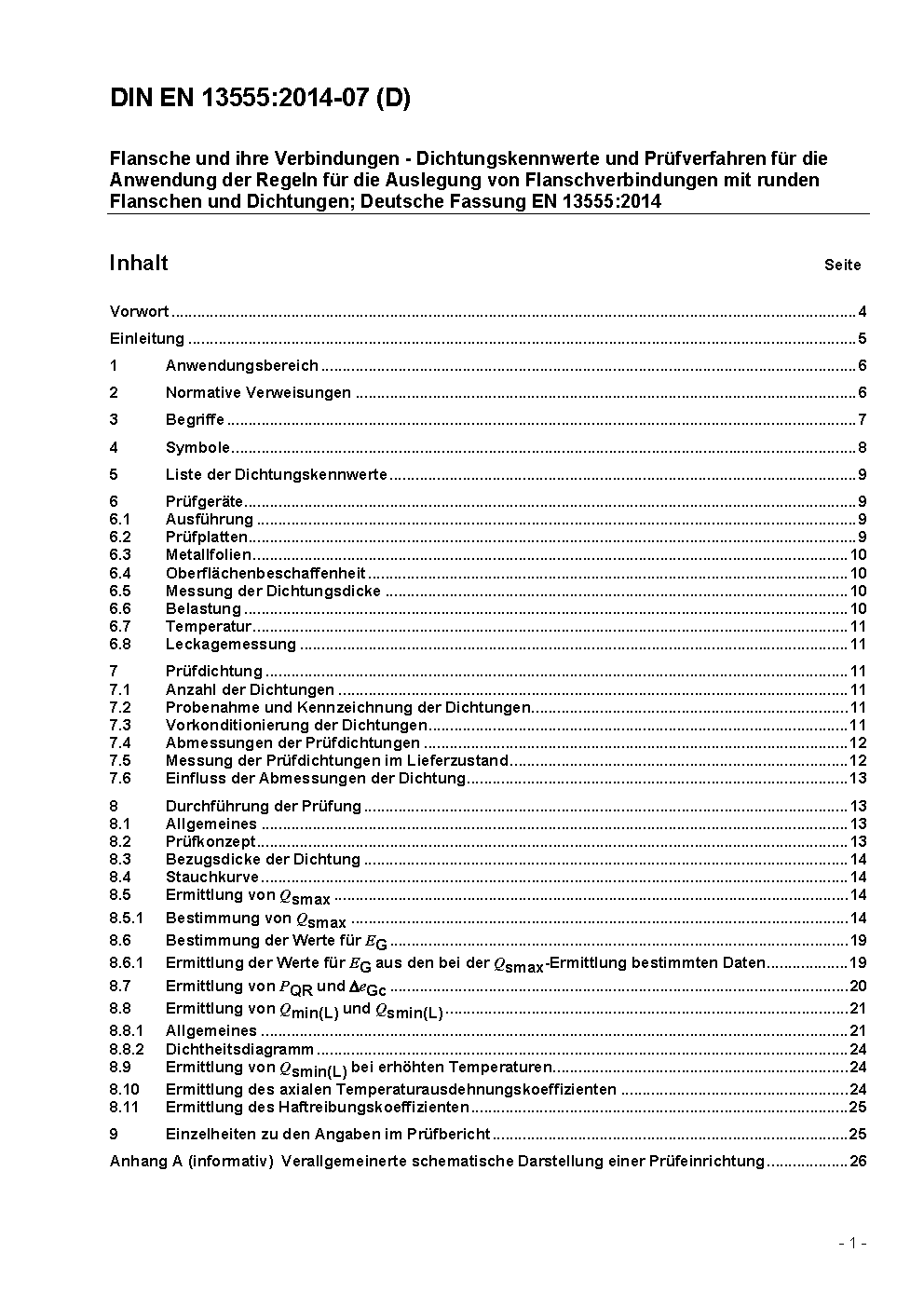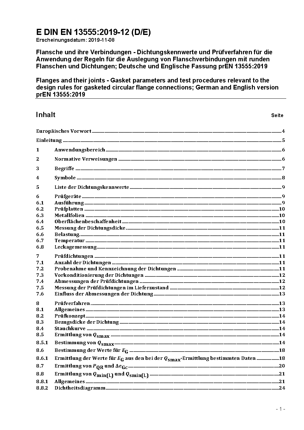 Flanges and their joints - Gasket parameters and test procedures relevant to the design rules for gasketed circular flange connections; German version prEN 13555:2002