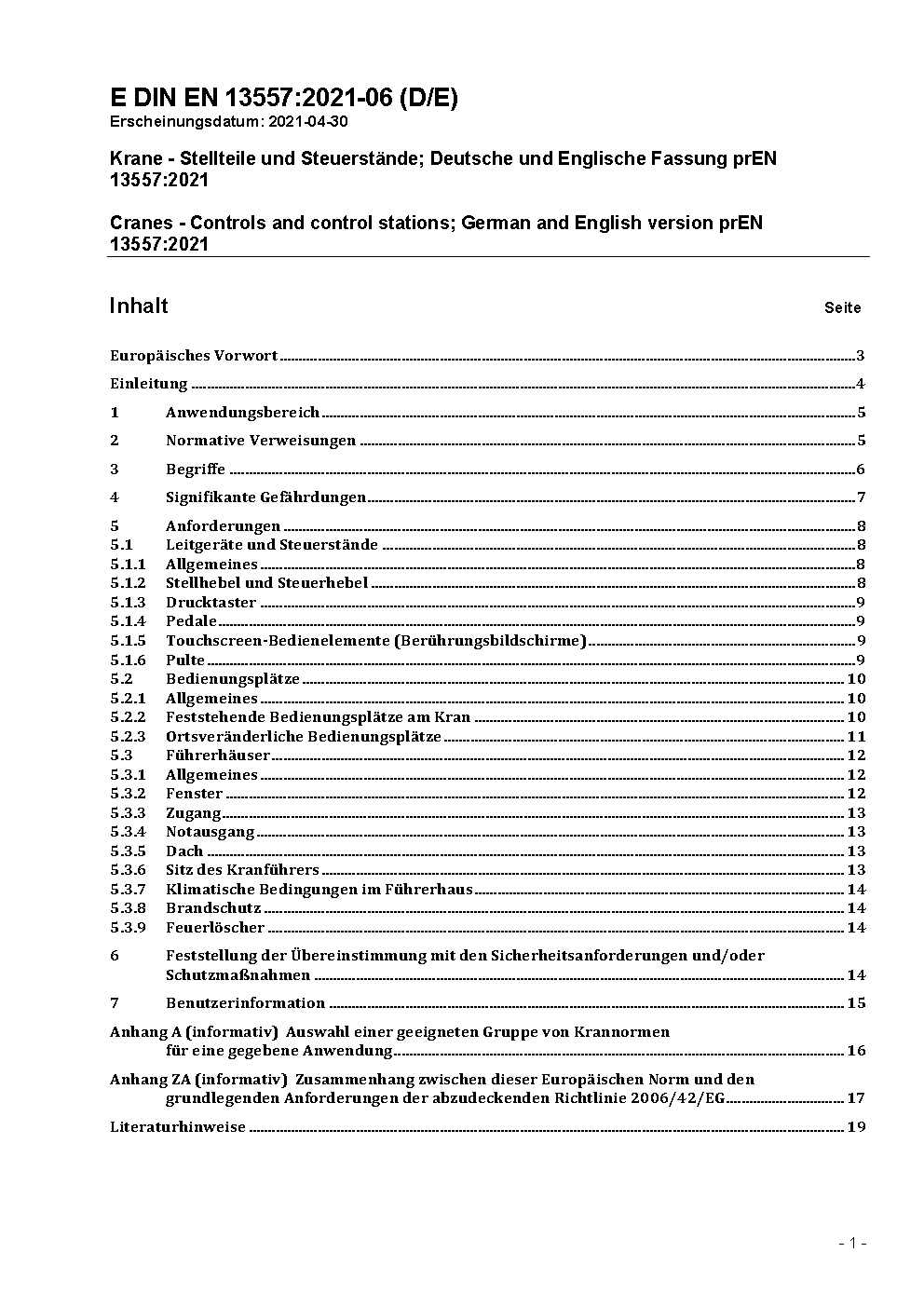 Cranes - Controls and control stations; German version EN 13557:2003+A2:2008.