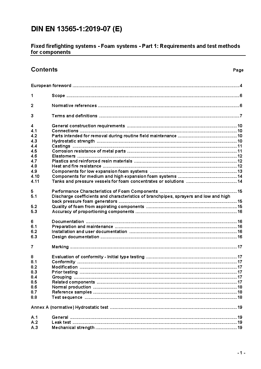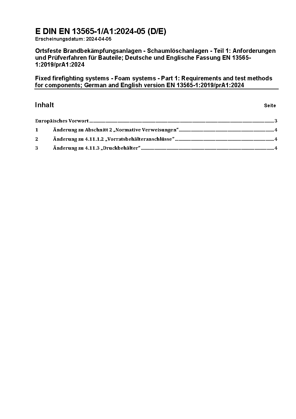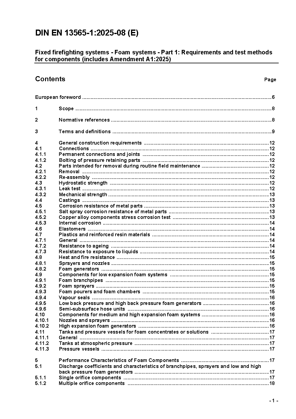 Fixed firefighting systems - Foam systems - Part 1: Requirements and test methods for components; German version EN 13565-1:2003/prA1:2007