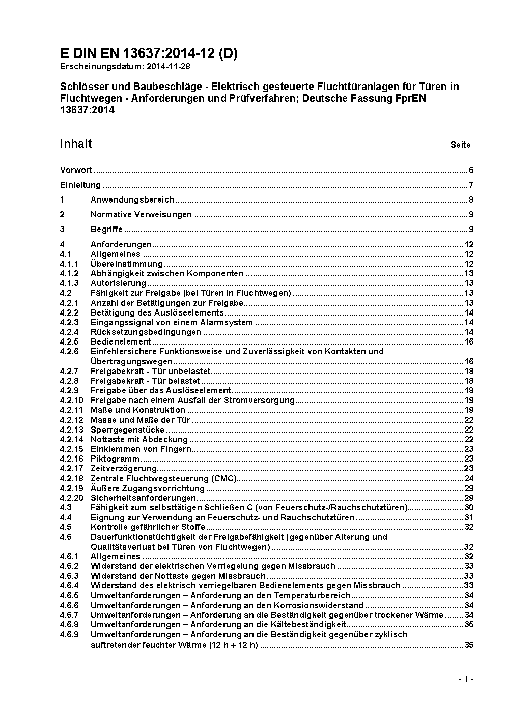 Schlösser und Baubeschläge - Elektrisch gesteuerte Fluchttüranlagen für Türen in Fluchtwegen - Anforderungen und Prüfverfahren; Deutsche Fassung EN 13637:2015