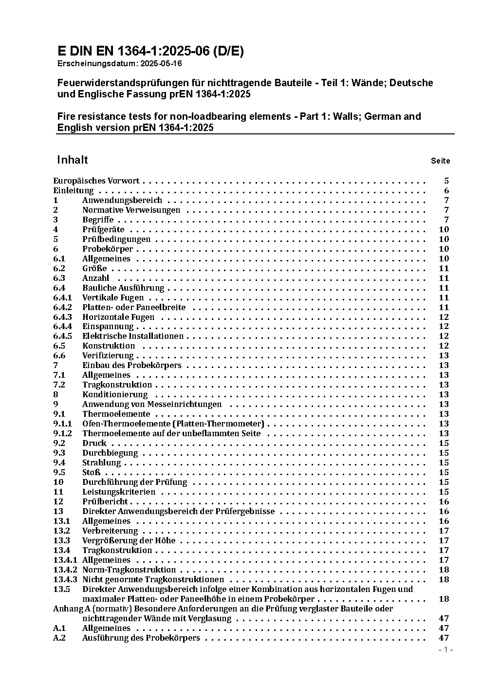 Prévu pour remplacer DIN EN 1364-1 (1999-10).