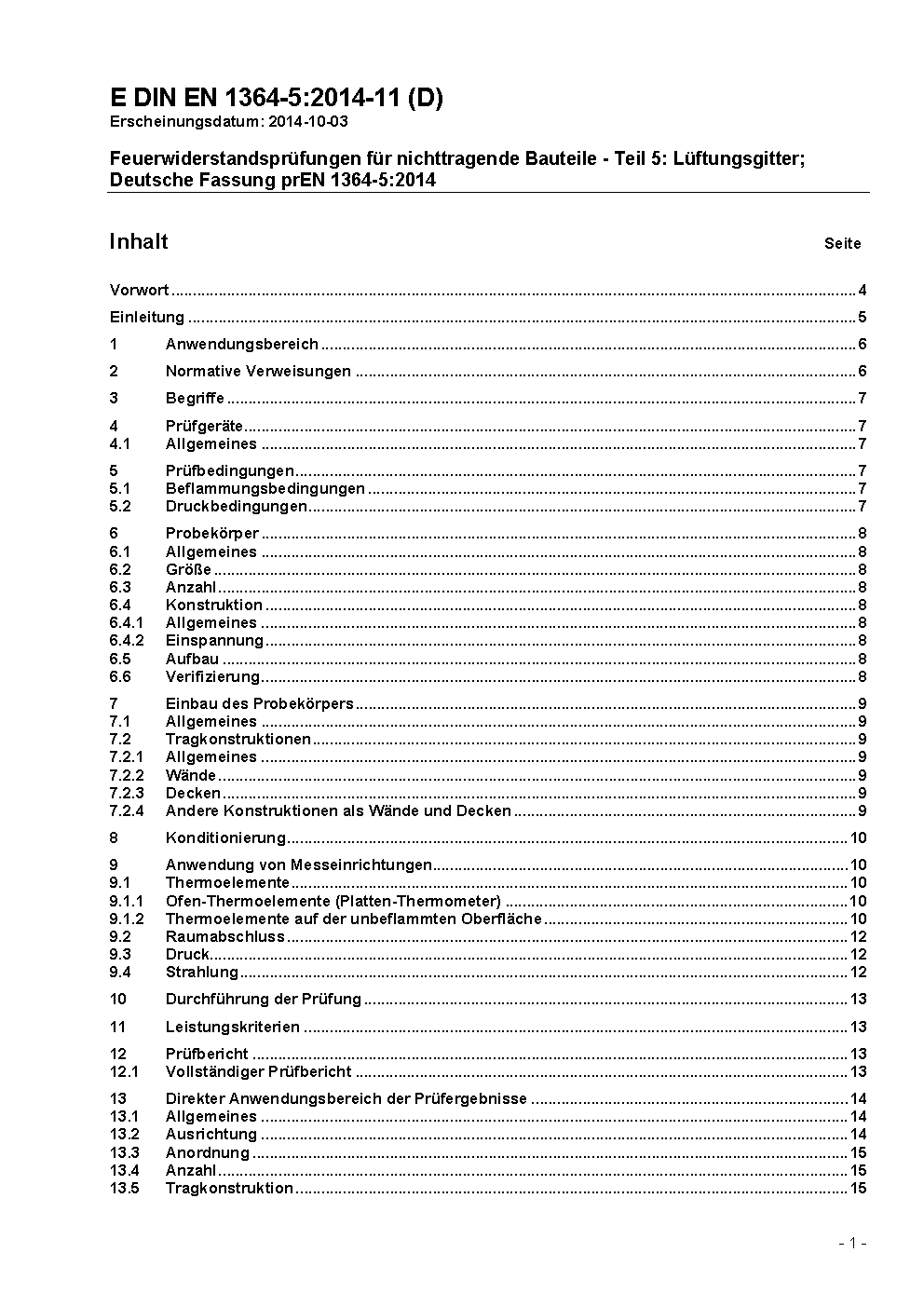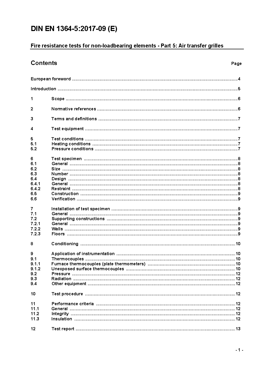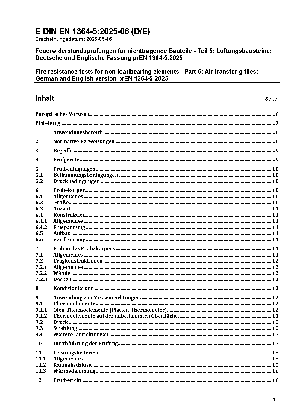Fire resistance tests for non-loadbearing elements - Part 5: Air transfer grilles; German and English version prEN 1364-5:2025