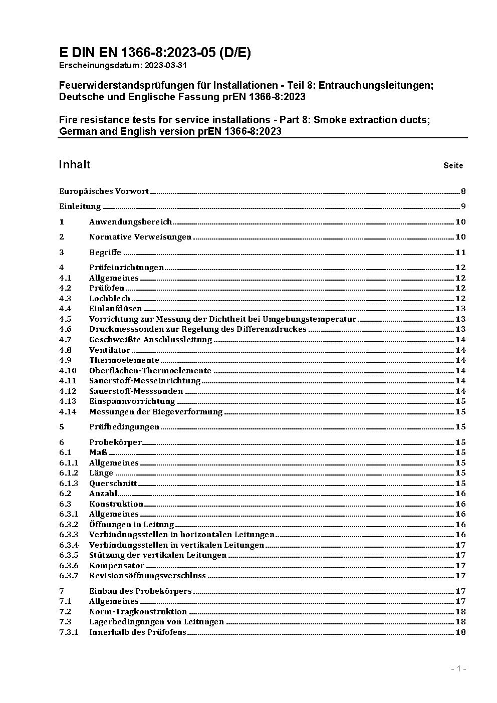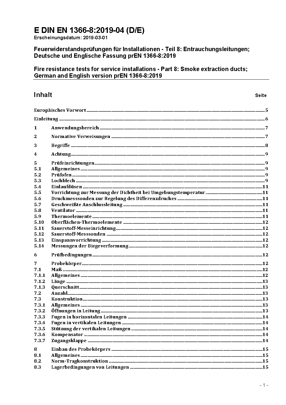 Feuerwiderstandsprüfungen für Installationen - Teil 8: Entrauchungsleitungen; Deutsche Fassung EN 1366-8:2004