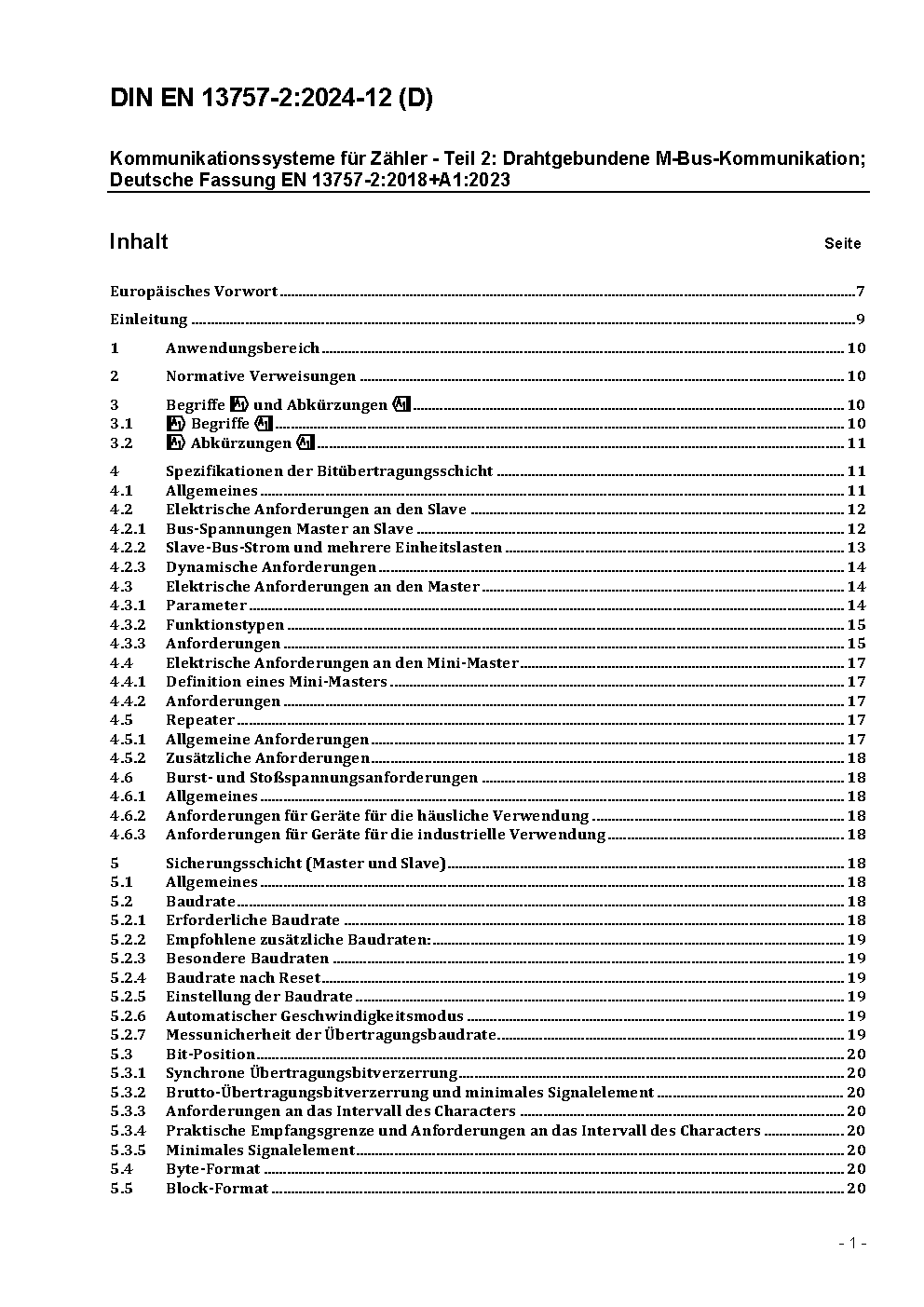 Kommunikationssysteme für Zähler und deren Fernablesung - Teil 2: Physical und Link Layer; Englische Fassung EN 13757-2:2004