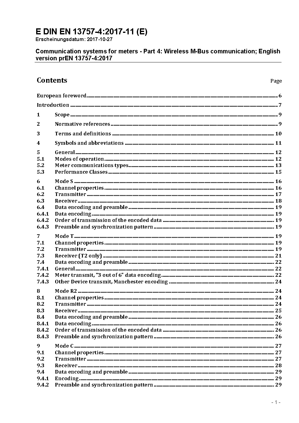Communication systems for meters and remote reading of meters - Part 4: Wireless meter readout (Radio meter reading for operation in the 868 - 870 MHz SRD band); German and English version prEN 13757-4:2003