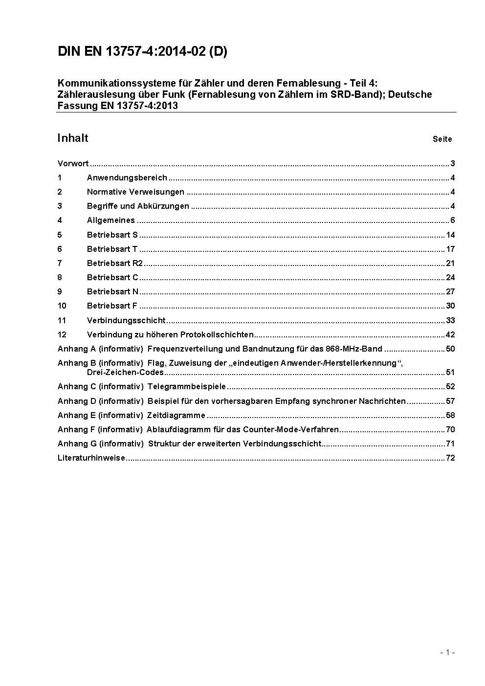 Kommunikationssysteme für Zähler und deren Fernablesung - Teil 4: Zählerauslesung über Funk (Fernablesung von Zählern im SRD-Band von 868 MHz bis 870 MHz); Deutsche und Englische Fassung prEN 13757-4:2003