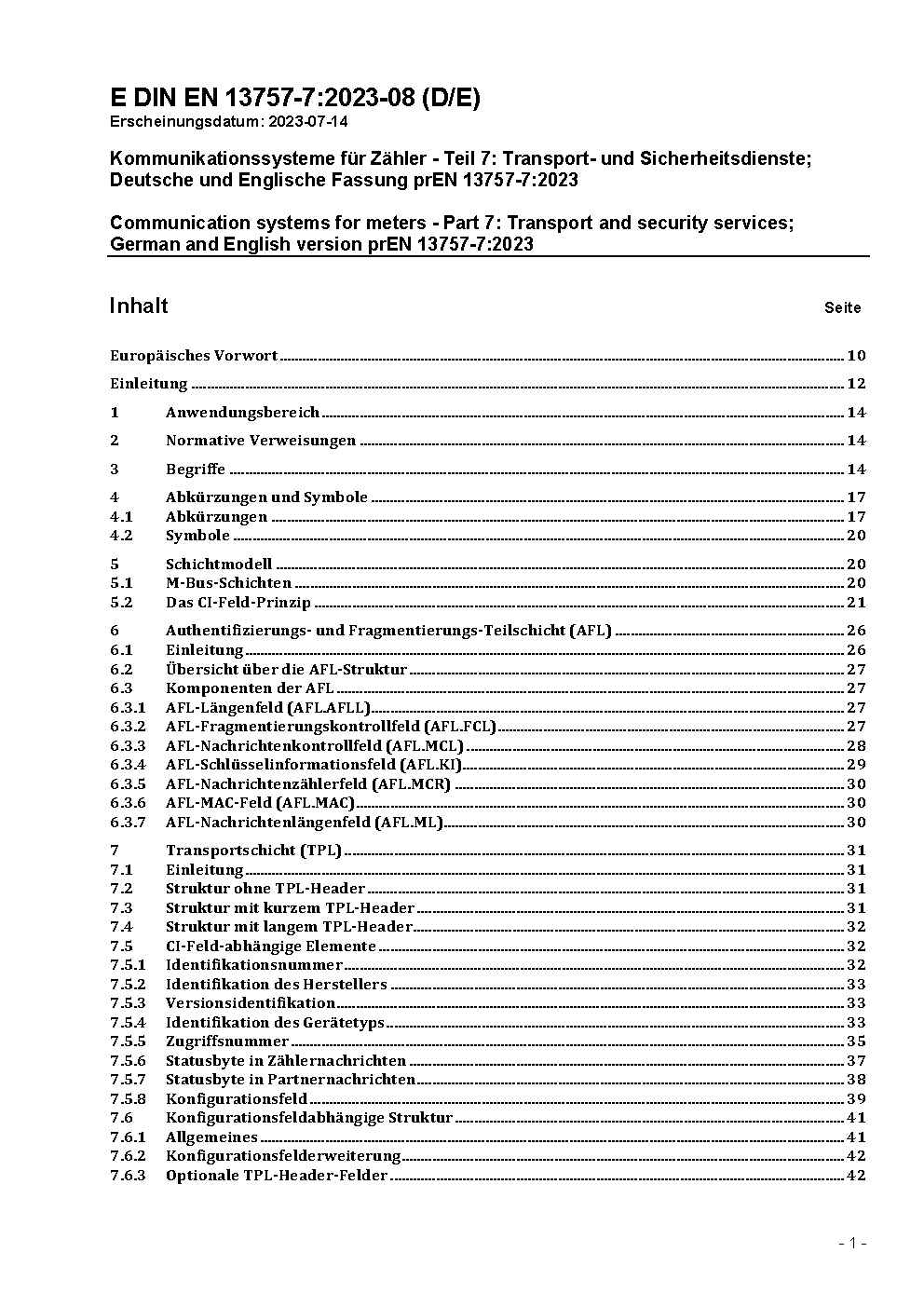 Communication systems for meters - Part 7: Transport and security services; German version EN 13757-7:2025.