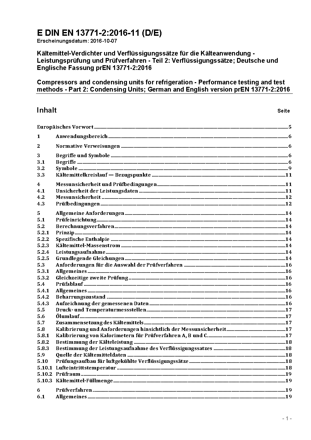Kältemittel-Verdichter und Verflüssigungssätze für die Kälteanwendung - Leistungsprüfung und Prüfverfahren - Teil 2: Verflüssigungssätze; Deutsche Fassung EN 13771-2:2017