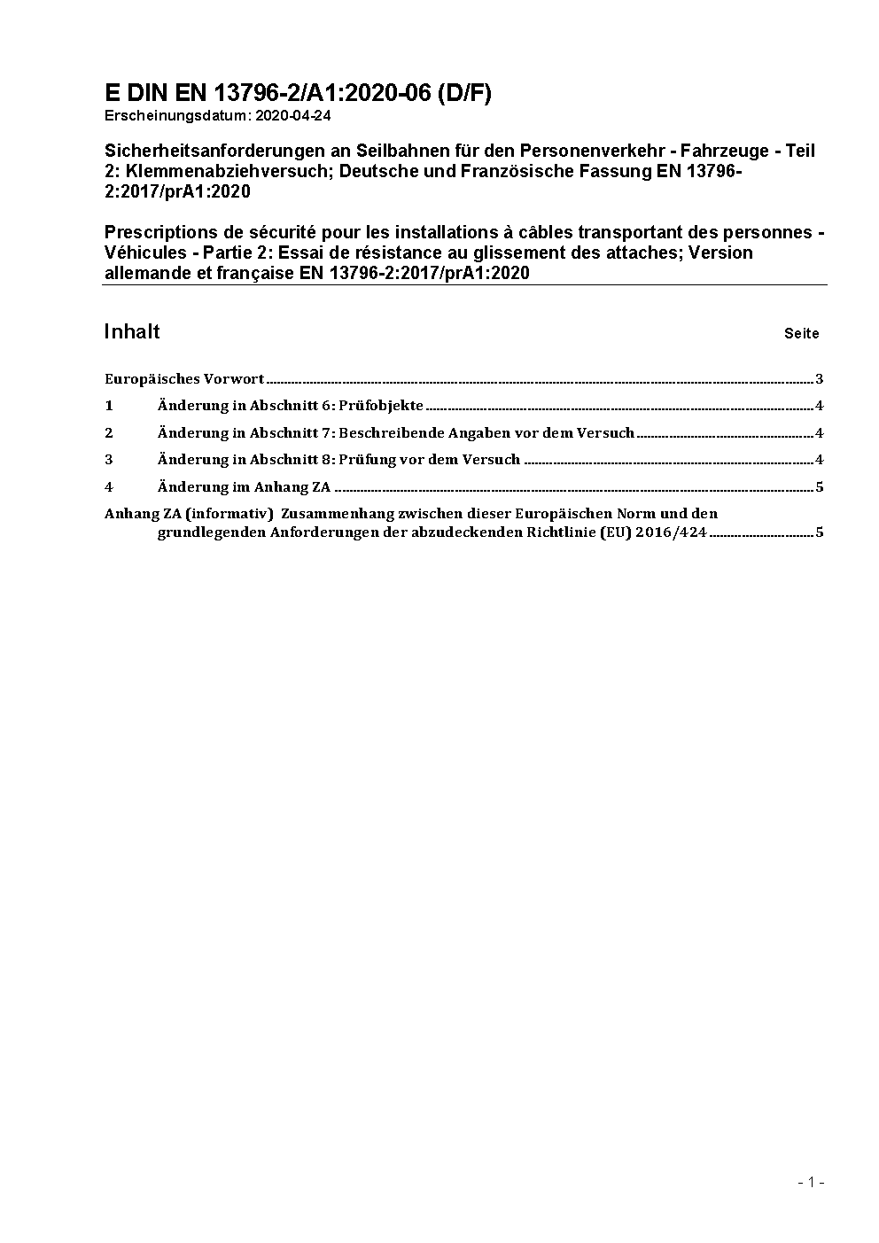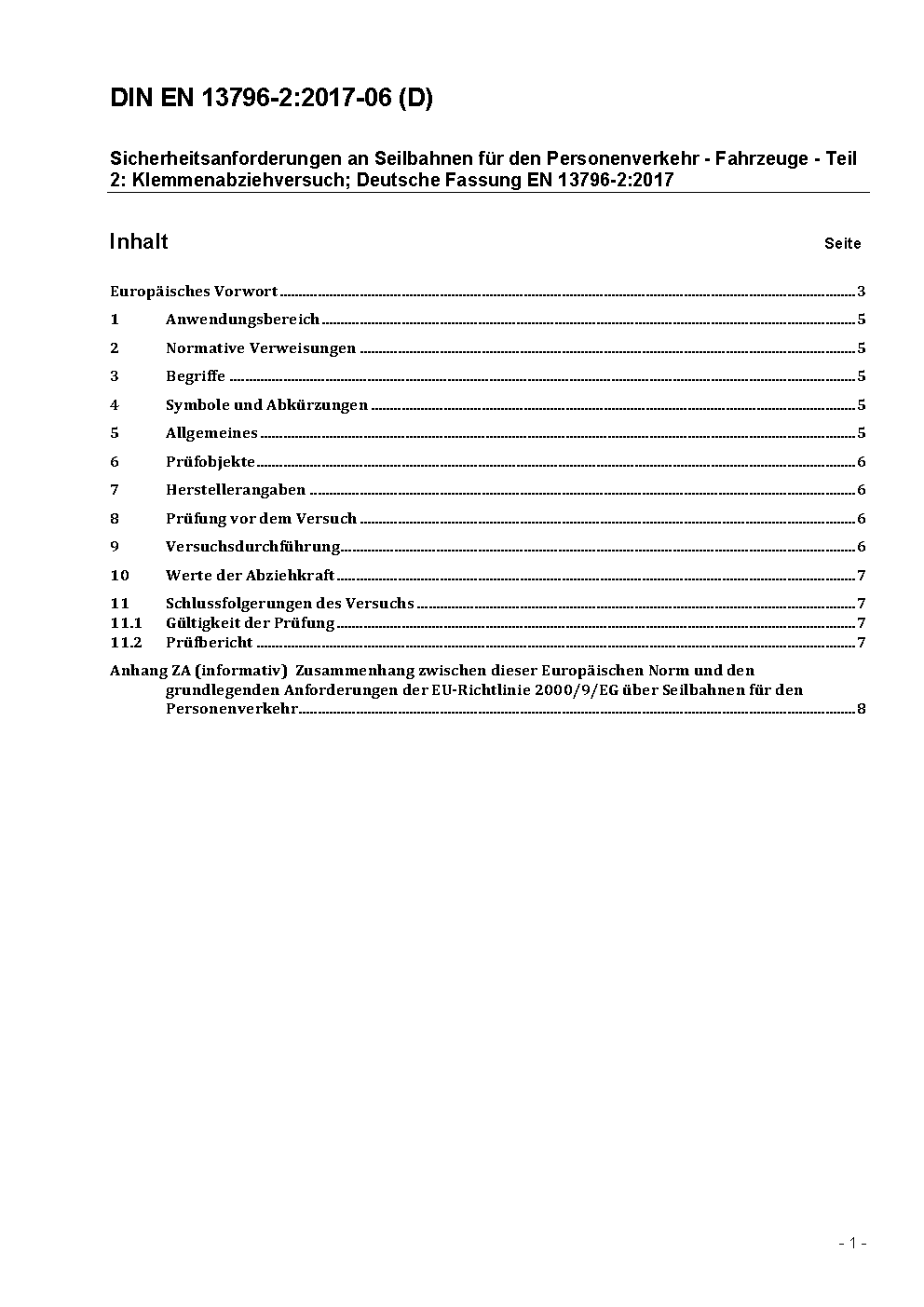 Sicherheitsanforderungen für Seilbahnen für den Personenverkehr - Fahrzeuge - Teil 2: Klemmenabziehversuch; Deutsche Fassung prEN 13796-2:2012