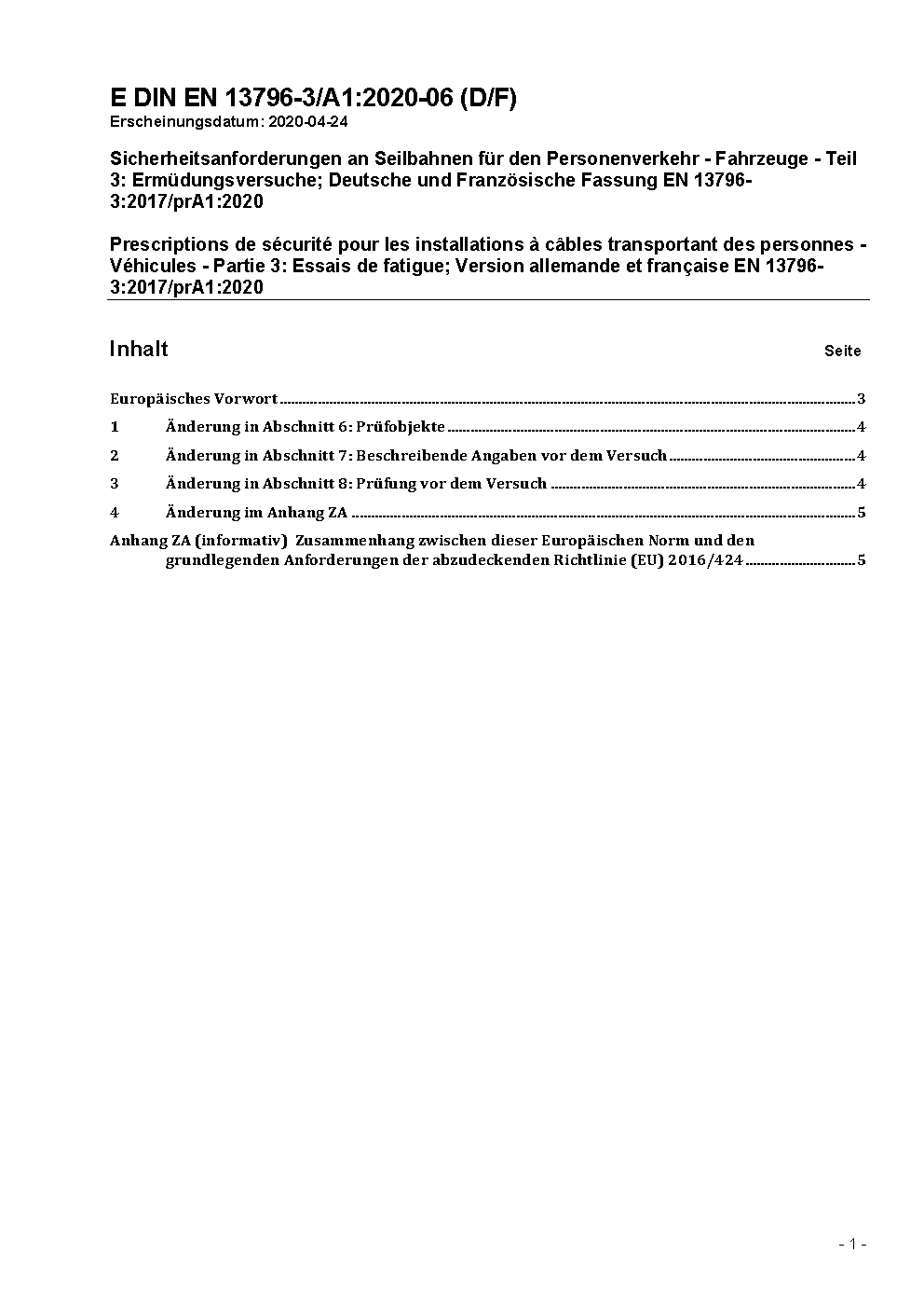 Sicherheitsanforderungen an Seilbahnen für den Personenverkehr - Fahrzeuge - Teil 3: Ermüdungsversuche; Deutsche Fassung EN 13796-3:2017