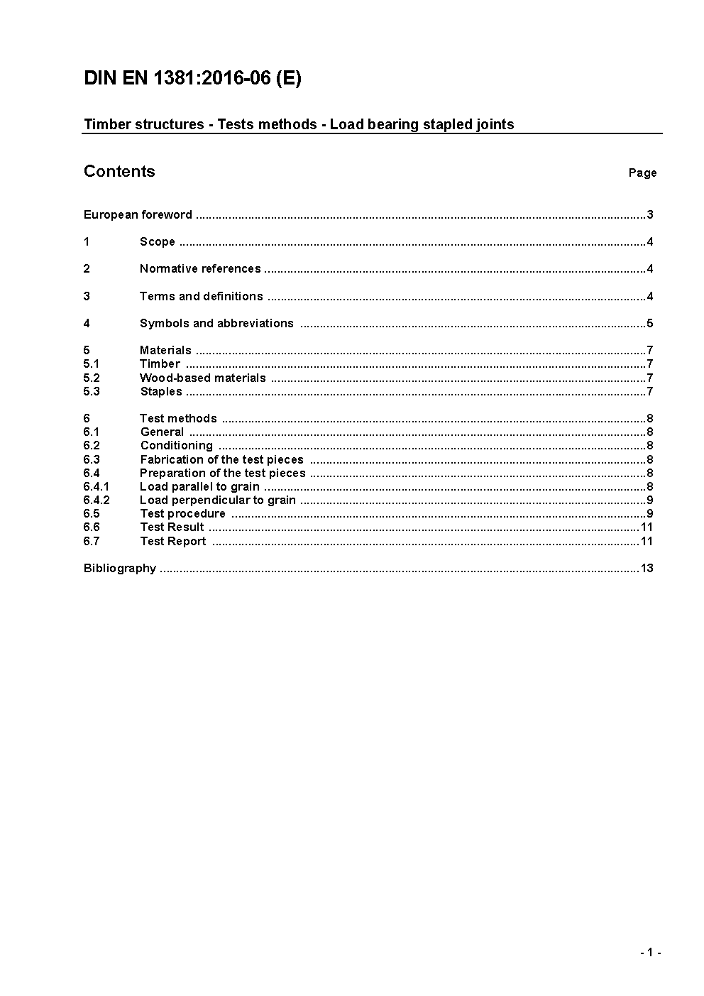 Timber structures - Test methods - Load bearing stapled joints; German version EN 1381:1999