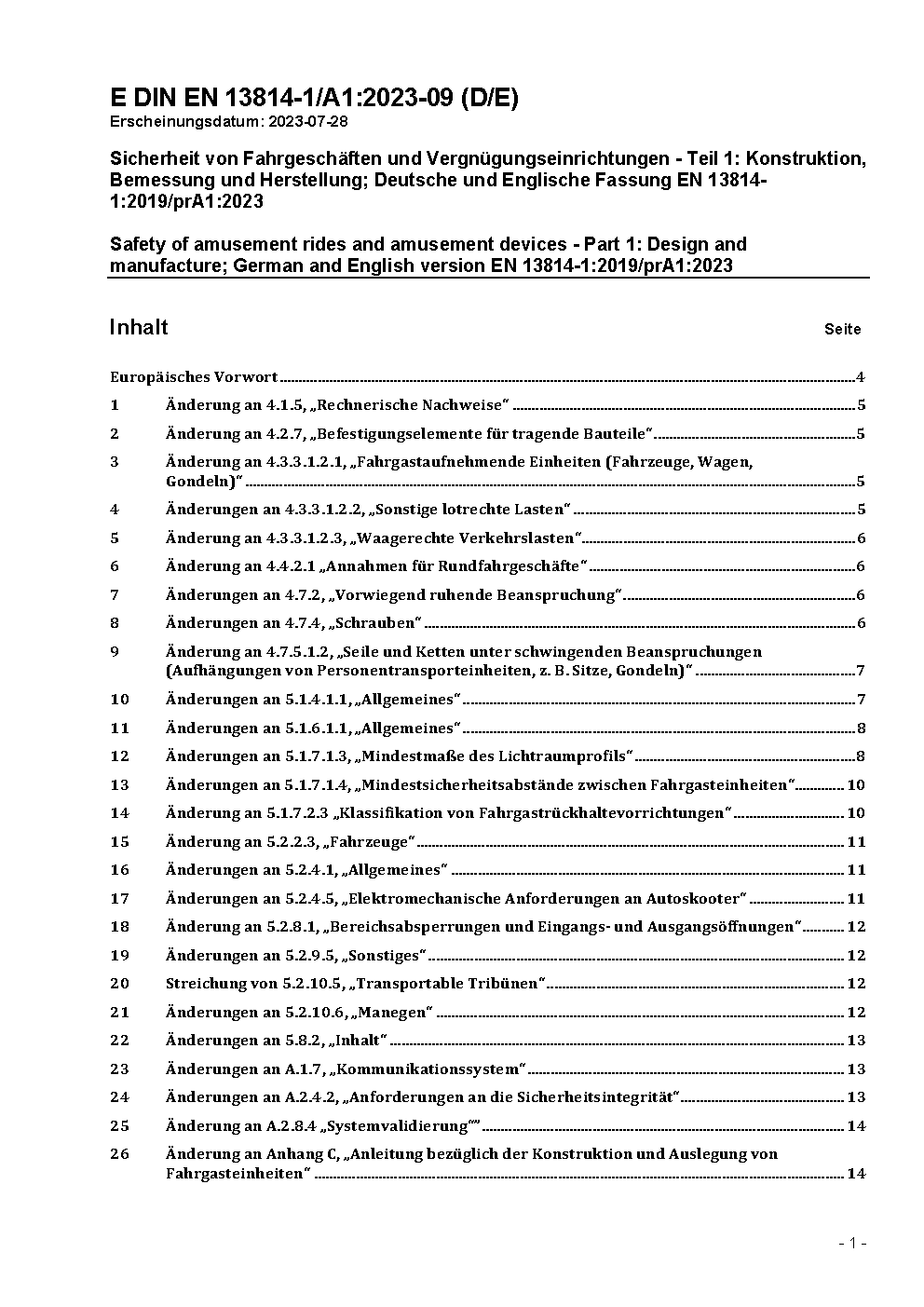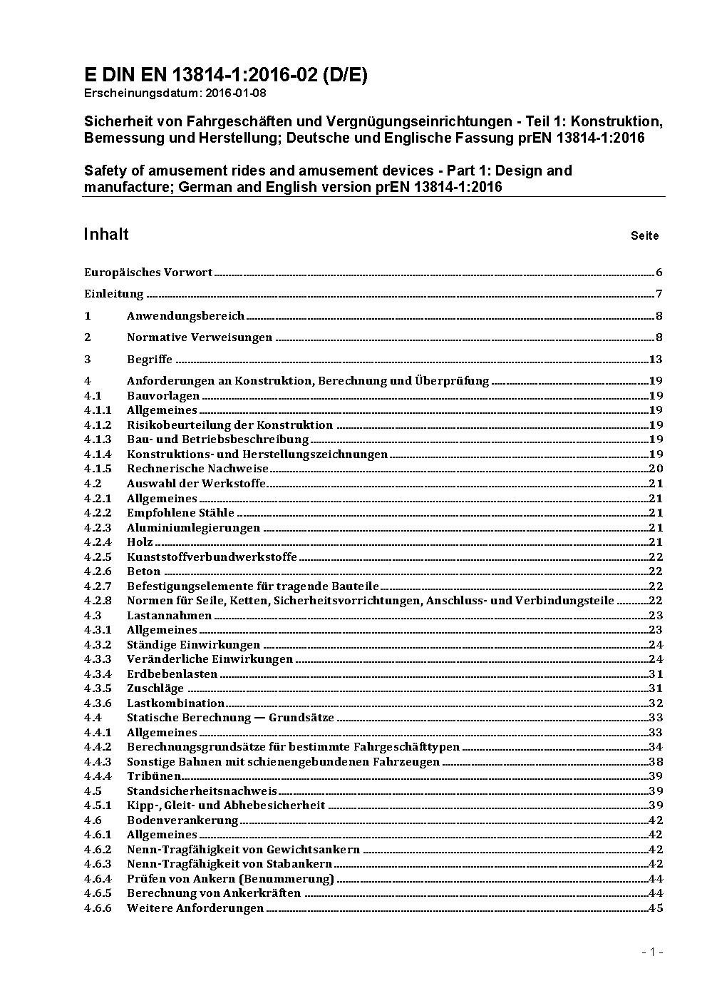 Sicherheit von Fahrgeschäften und Vergnügungsanlagen - Teil 1: Konstruktion, Bemessung und Herstellung; Deutsche Fassung EN 13814-1:2019