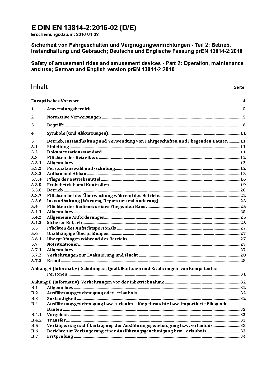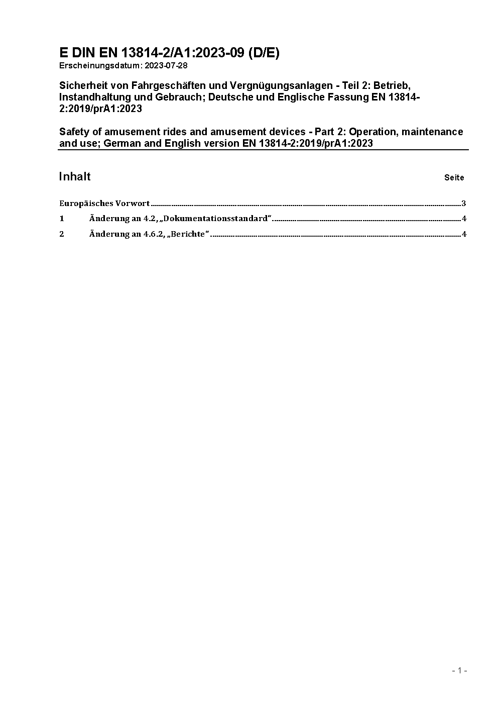 Safety of amusement rides and amusement devices - Part 2: Operation, maintenance and use; German and English version EN 13814-2:2019/prA1:2023