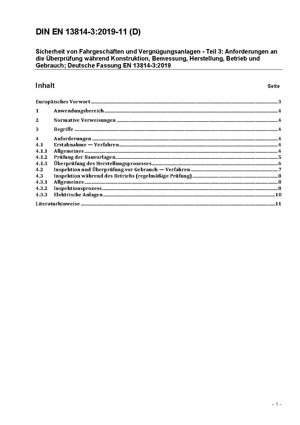 Sicherheit von Fahrgeschäften und Vergnügungsanlagen - Teil 3: Anforderungen an die Überprüfung während Konstruktion, Bemessung, Herstellung, Betrieb und Gebrauch; Deutsche und Englische Fassung EN 13814-3:2019/prA1:2023