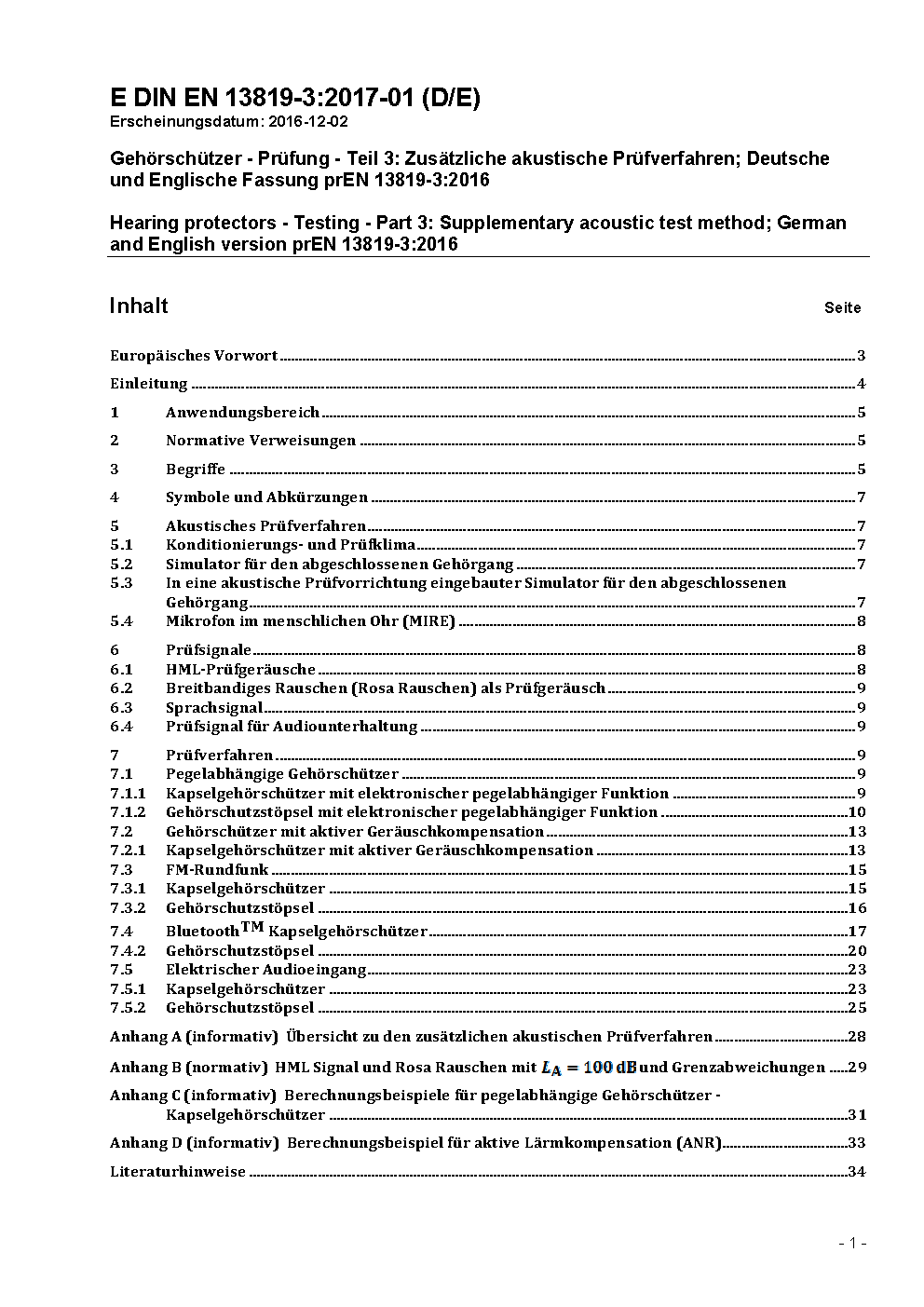Gehörschützer - Prüfung - Teil 3: Zusätzliche akustische Prüfverfahren; Deutsche und Englische Fassung prEN 13819-3:2016